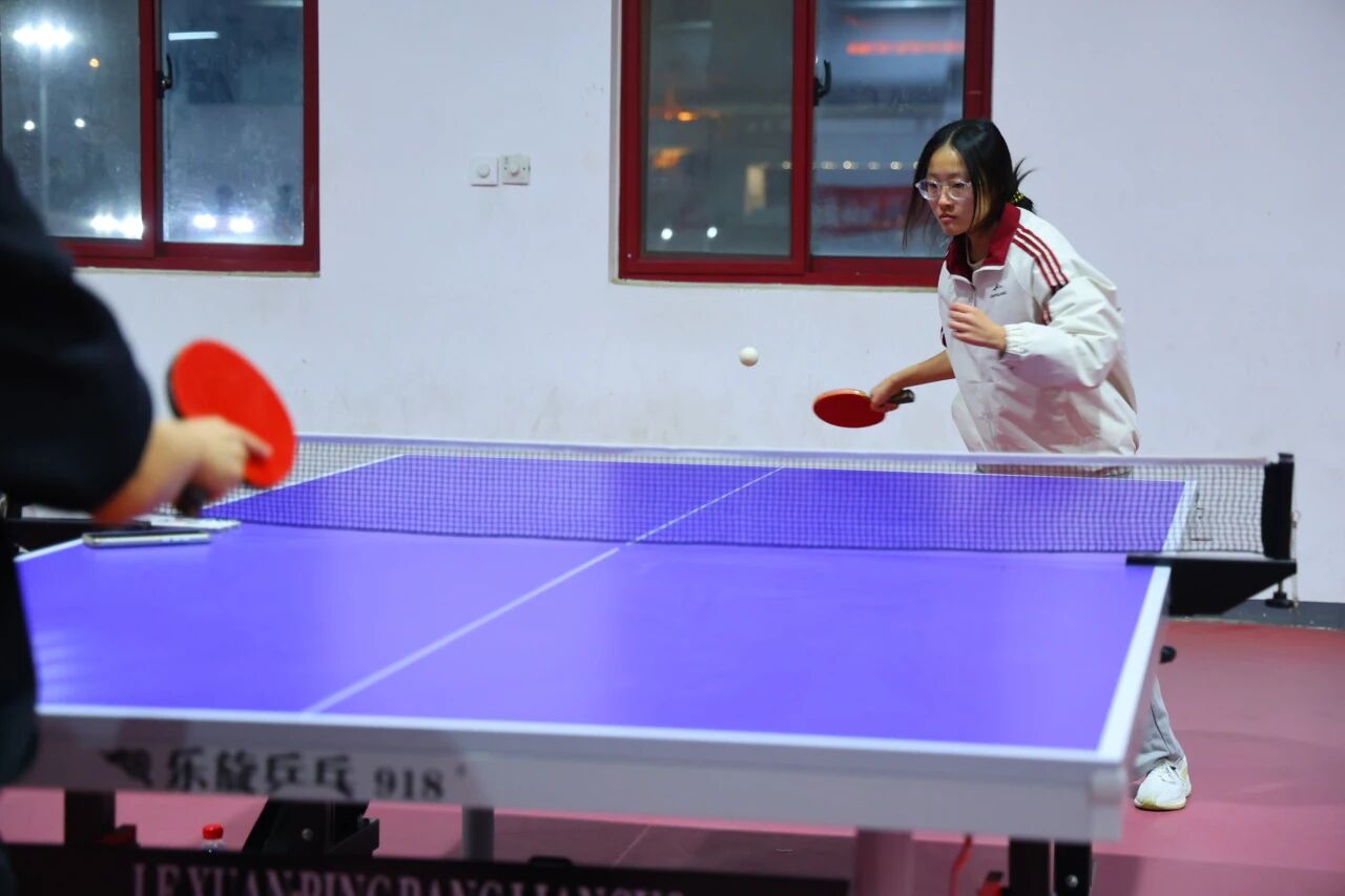球台之上,小白球划出一道道优美的弧线。或精准出击,或大力扣杀,或巧妙旋球……选手们全神贯注,目光紧锁着每一次跳跃的轨迹。每一次挥拍,都是平日汗水凝结的成果。