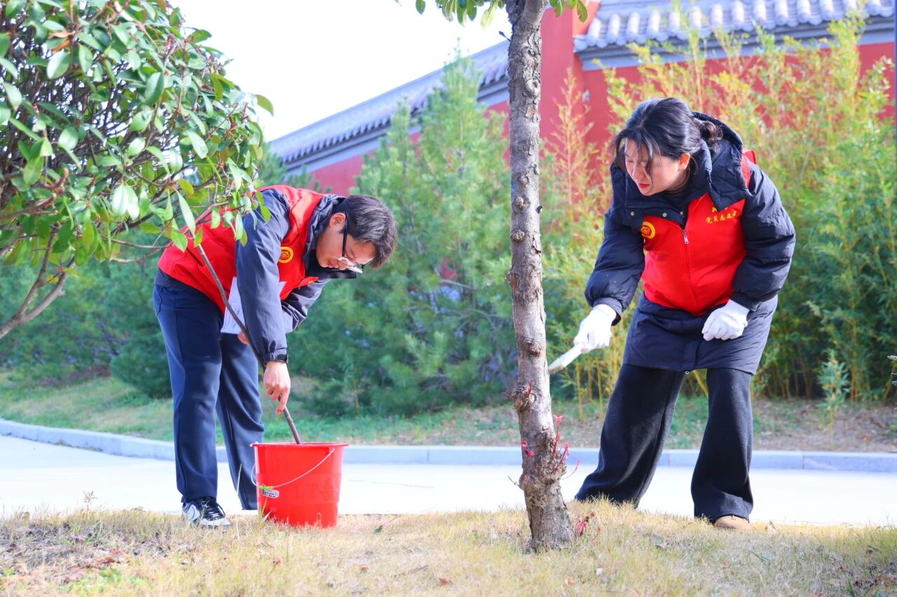 为充分发挥党员先锋模范作用,以实际行动守护校园生态环境,筑牢树木防寒防虫安全屏障,近日,郑州体育职业学院各党支部积极响应校党委号召,有序开展“党日志愿显担当 刷白防寒守书香”校园树木刷白主题党日活动。