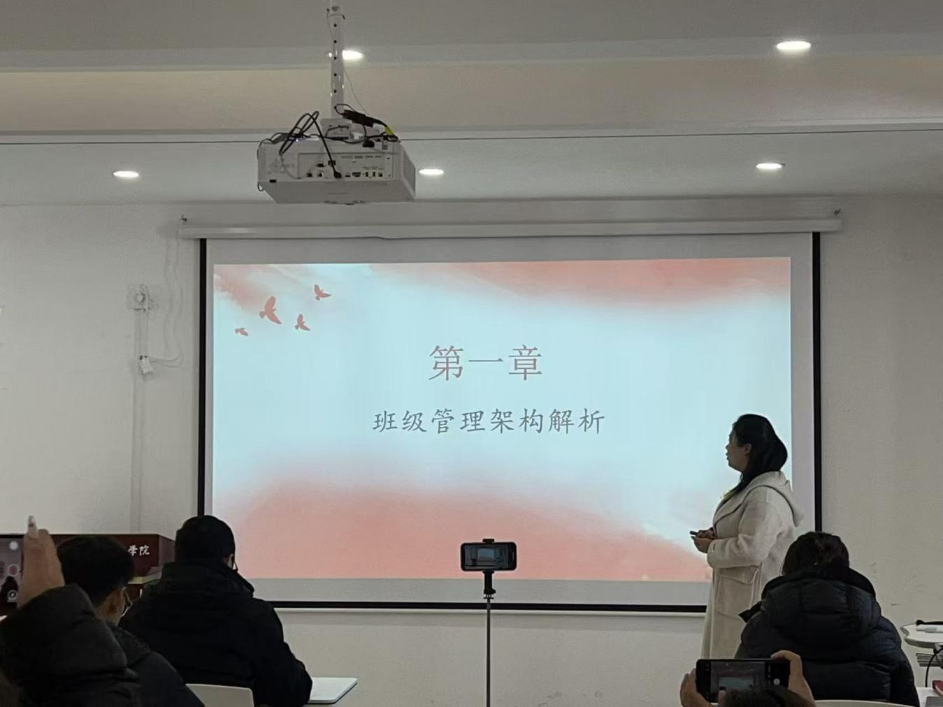 培训前,“硬核奋斗团队”团总支书记祁钰杉系统收集整理班级团队建设案例,为培训提供了扎实的素材基础。理论为基,实践为导。专题讲解环节,“武德先锋团队”辅导员刘志银以《班级团队建设的路径与策略》为题,结合自身带班经验,围绕团队目标设定、学生骨干培养、班级制度构建、团队凝聚力提升等关键维度,系统阐释了班级团队建设的理论与实操方法,内容详实、逻辑清晰,为参训辅导员提供了切实可行的工作指引。