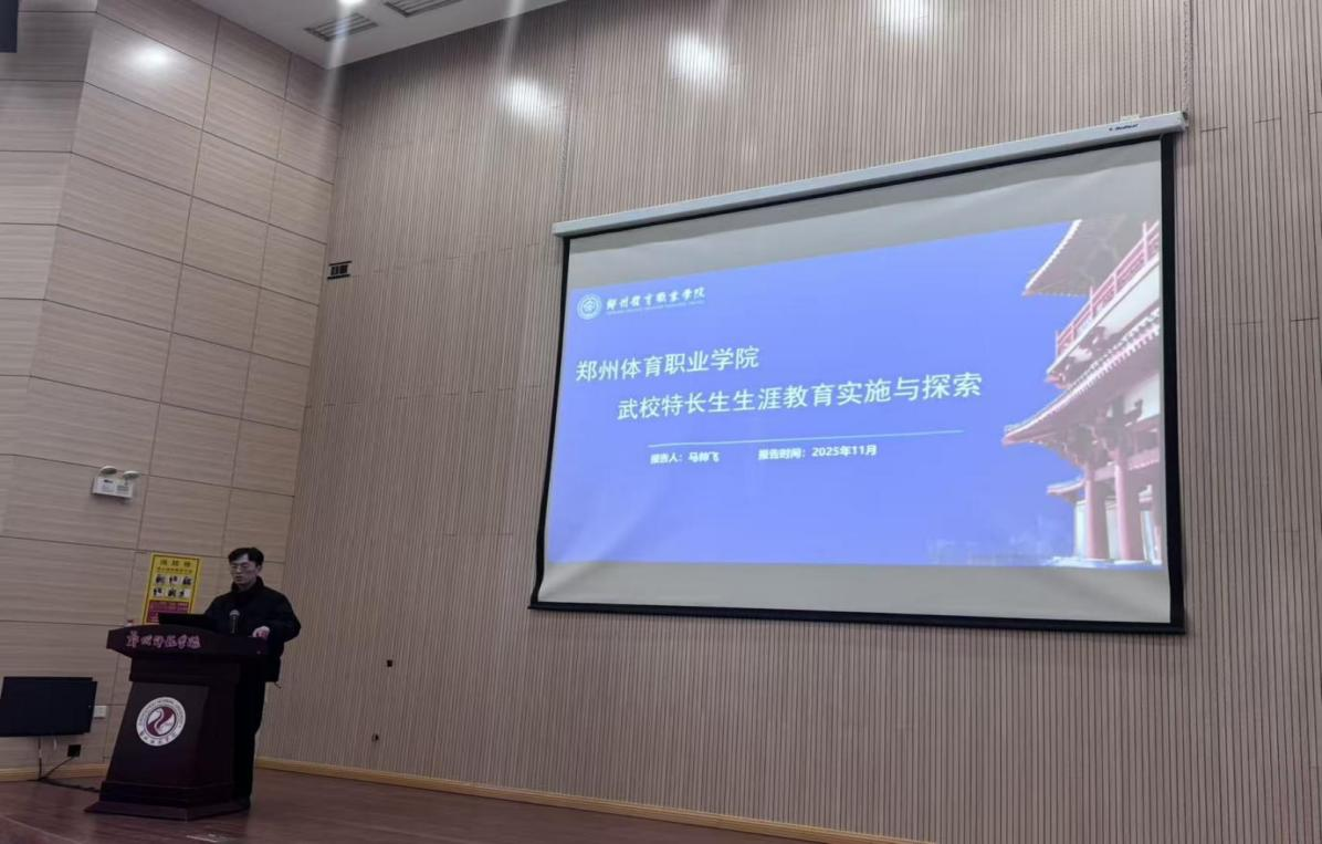闭幕式上,马帅飞老师以“郑州体育职业学院武术特长生生涯教育实施与探索”为题,代表学校向全体参会者汇报了武术教育学院结合武术生特点创设实施“4+3+N生涯教育体系”(4种教育:觉醒教育、素养教育、技能教育、职业教育;3个时期:认知体验期、实践成长期、反思确定期;N门校内外理论与实践课程);以及履历表建设、武术文化礼仪教育等实践成果,受到与会领导、专家和同行的关注。
