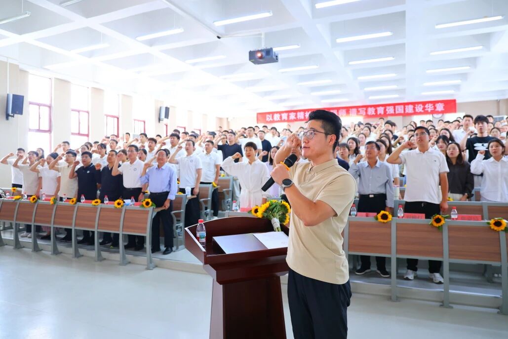 教师代表王广曜在发言时讲到,师德不仅仅是课堂上的教书育人,更是生活中的言传身教。教师的一言一行、一举一动,都在潜移默化地影响着学生。教育是一场双向奔赴的旅程,教师在给予学生知识与关爱的同时,也在从学生身上汲取着成长的力量。在教育的道路上,虽然会面临诸多困难,但只要心中有爱,就没有什么能够阻挡前进的脚步。