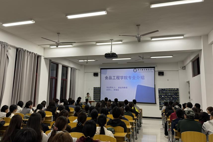 食品工程学院教研室主任宋俊亚围绕专业核心展开宣讲,系统介绍食品质量与安全、食品营养与健康、食品贮运与营销三大专业的未来发展规划与核心定位,用详实的专业解读帮助新生快速了解学科优势,系统阐述我院食品质量与安全专业、食品营养与健康专业以及食品贮运与营销专业的专业特色,课程特点,让学生明确学食品不是“做饭”专业,我们培养的是“懂技术、精操作、能创新、守底线”综合素质的现代食品行业高层次技术技能型人才
