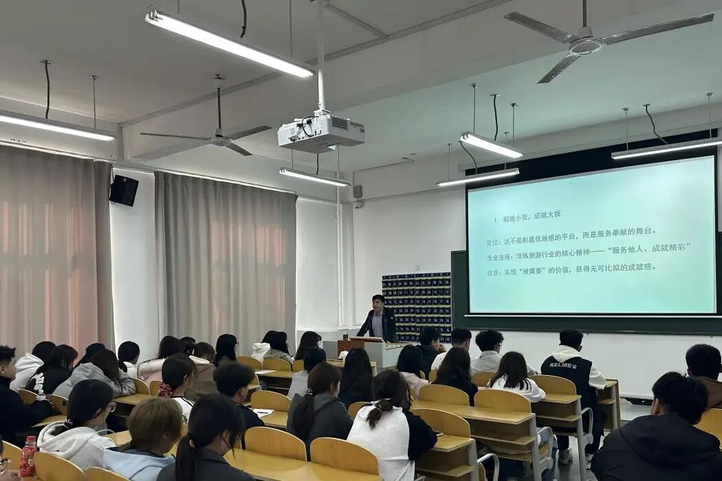 近日,郑州体育职业学院旅游学院院长江旅冰在嵩阳书院111教室,与24级、25级全体班干部和25级学生会全体成员,开展了一场以“新征程,新担当,新成长”为主题的座谈会。