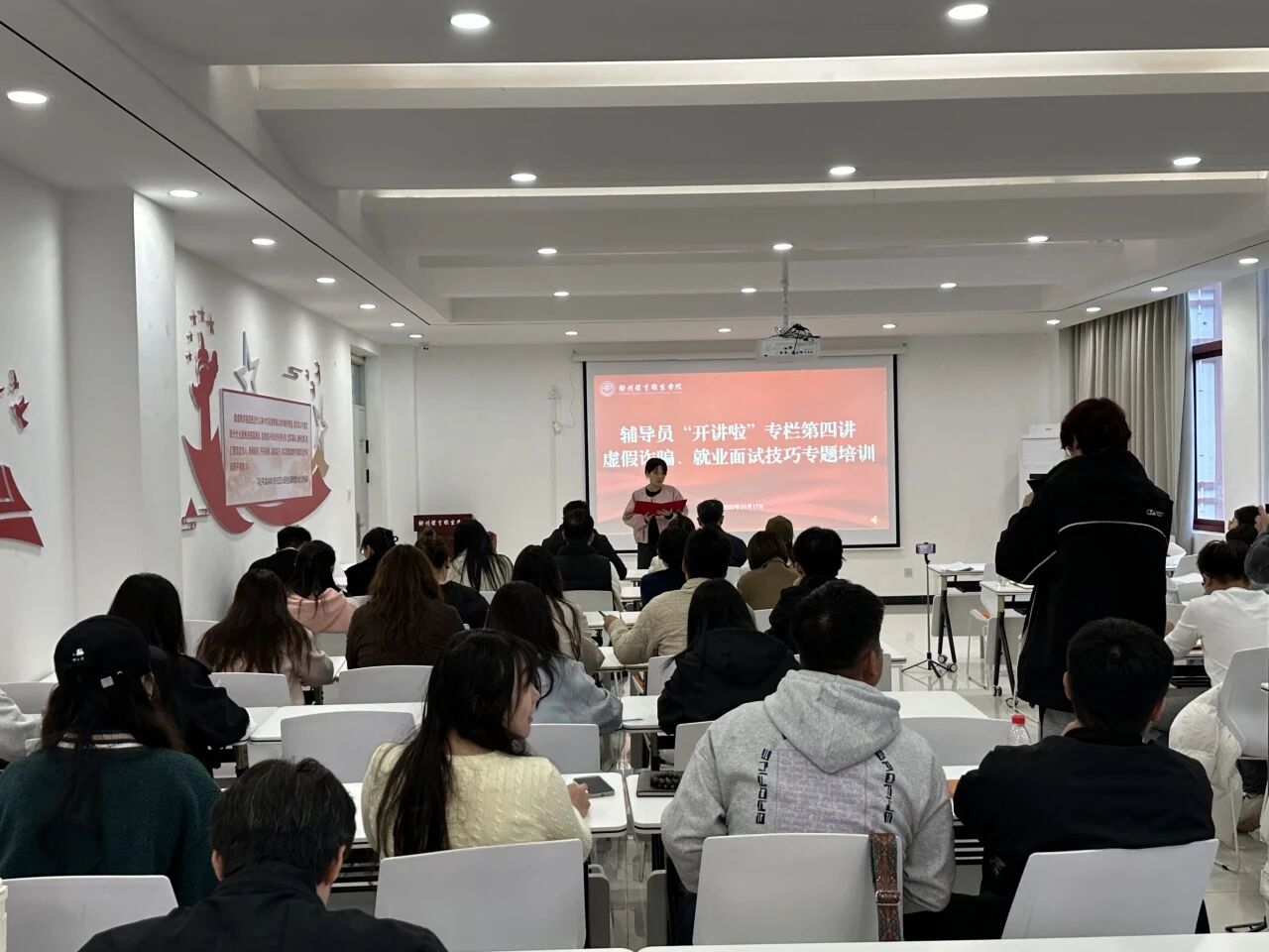 为进一步提升辅导员业务能力,更好地服务学生成长成才,我校学生处主办的辅导员“开讲啦”专栏第四讲——“虚假诈骗防范与就业面试技巧”专题培训在北校区行政楼三楼第二会议室顺利举行。本次培训旨在增强辅导员指导学生应对求职陷阱和提升面试能力的工作实效,全体辅导员参会。会议由学生处赵雅老师主持。
