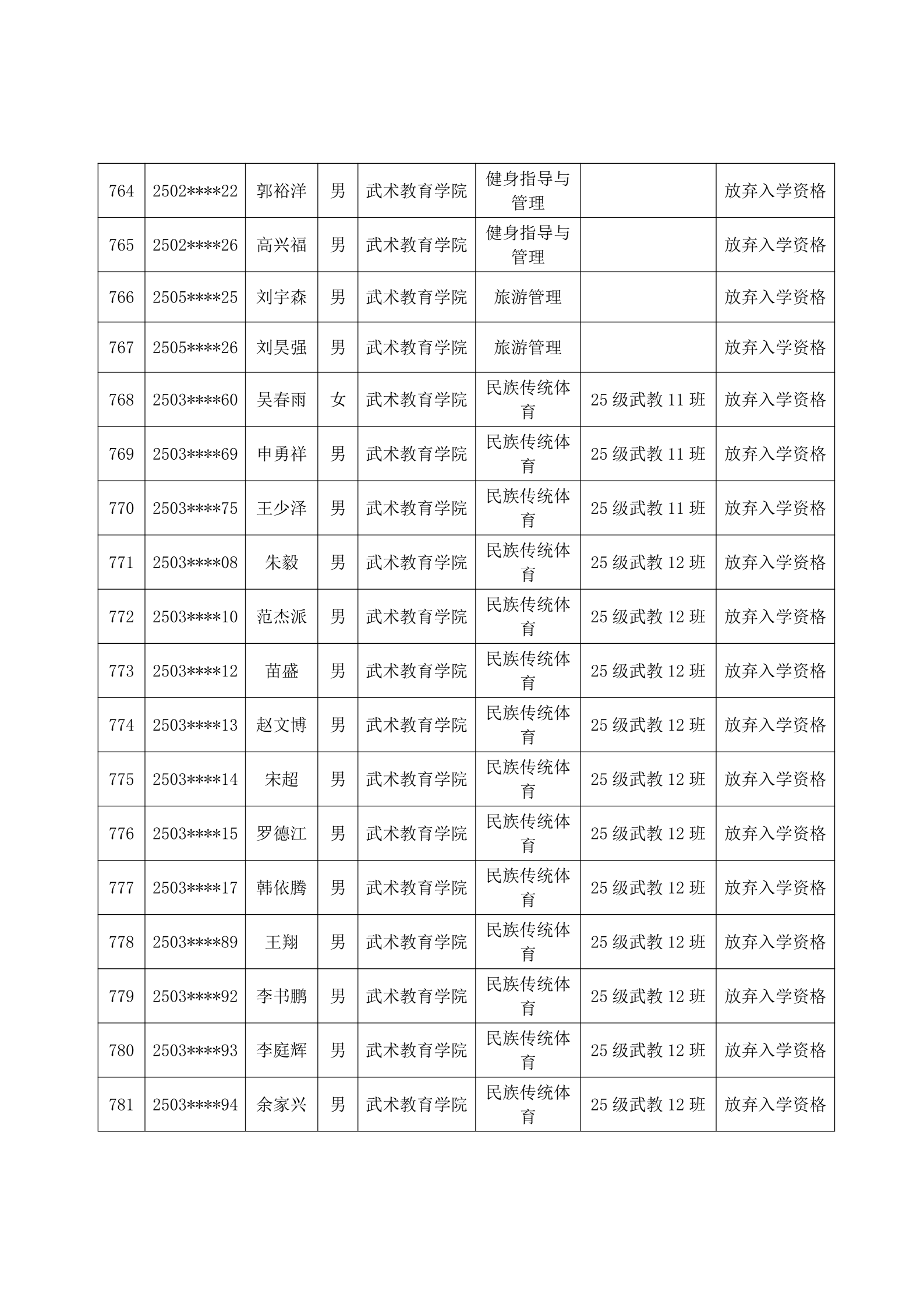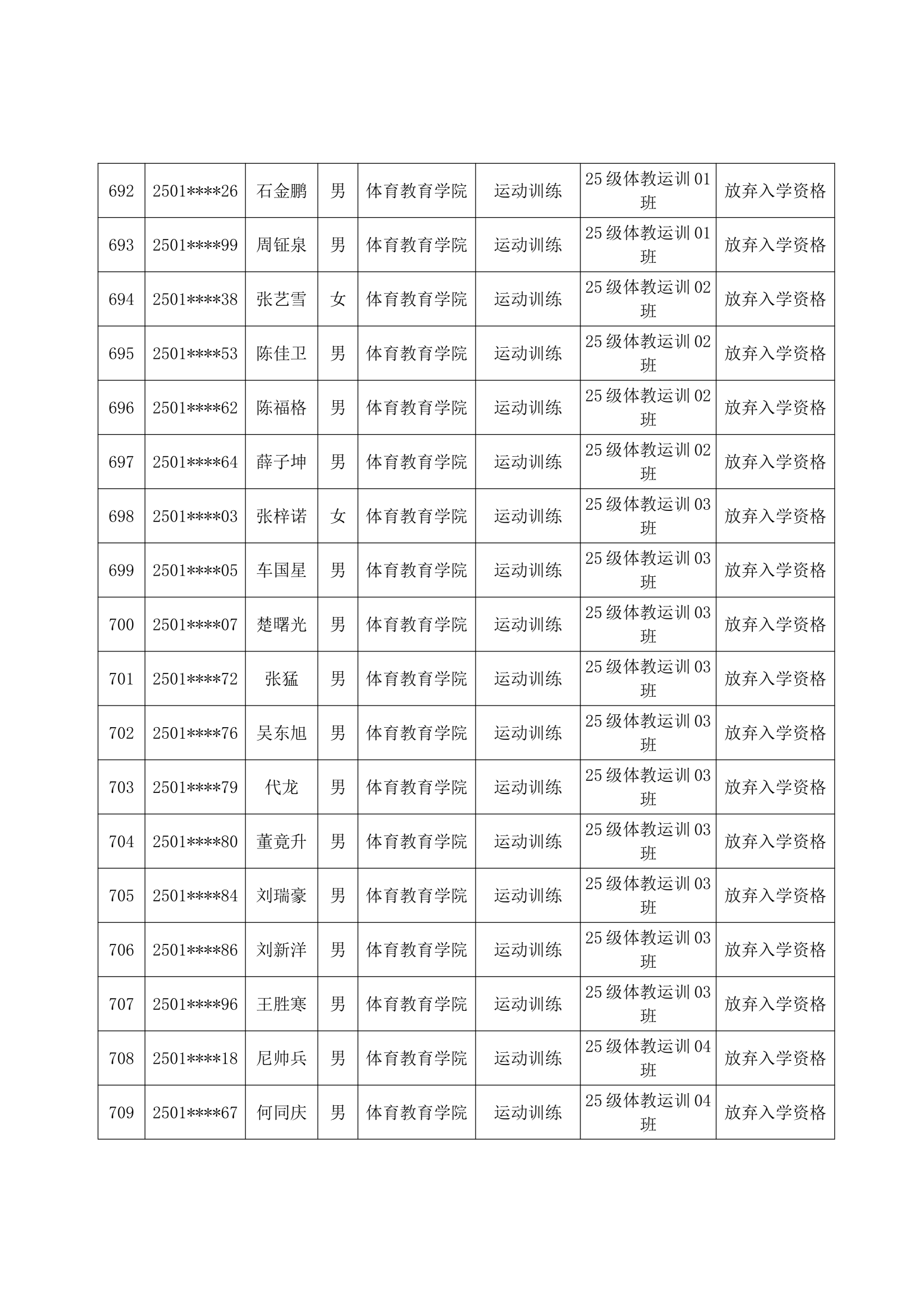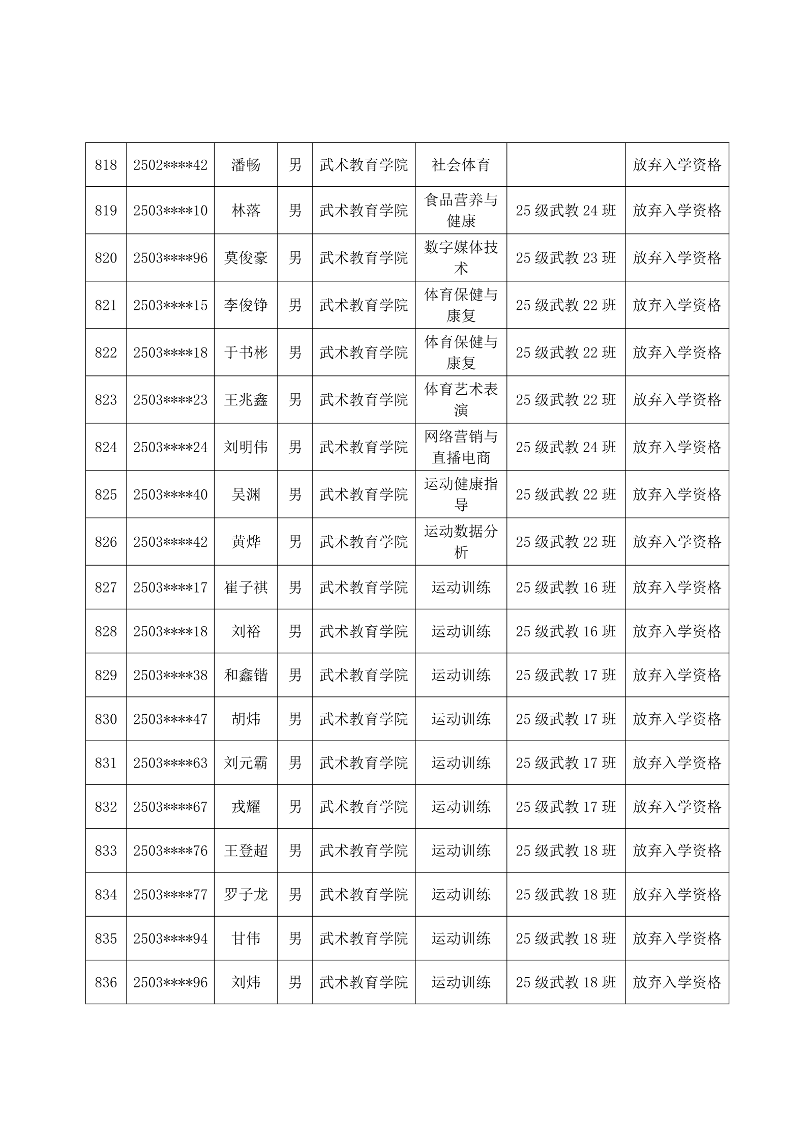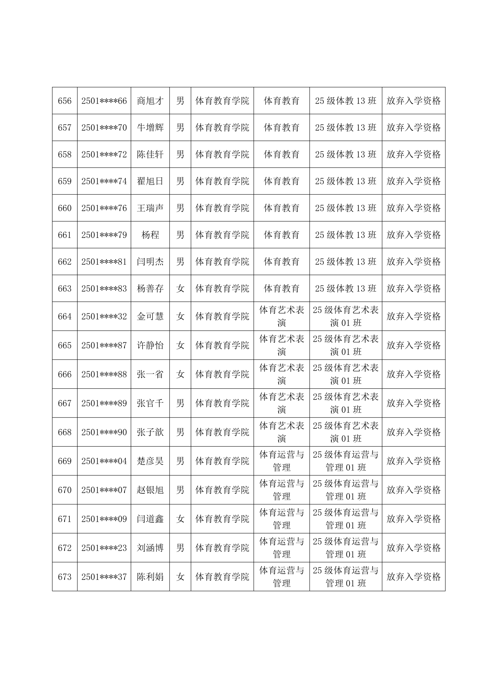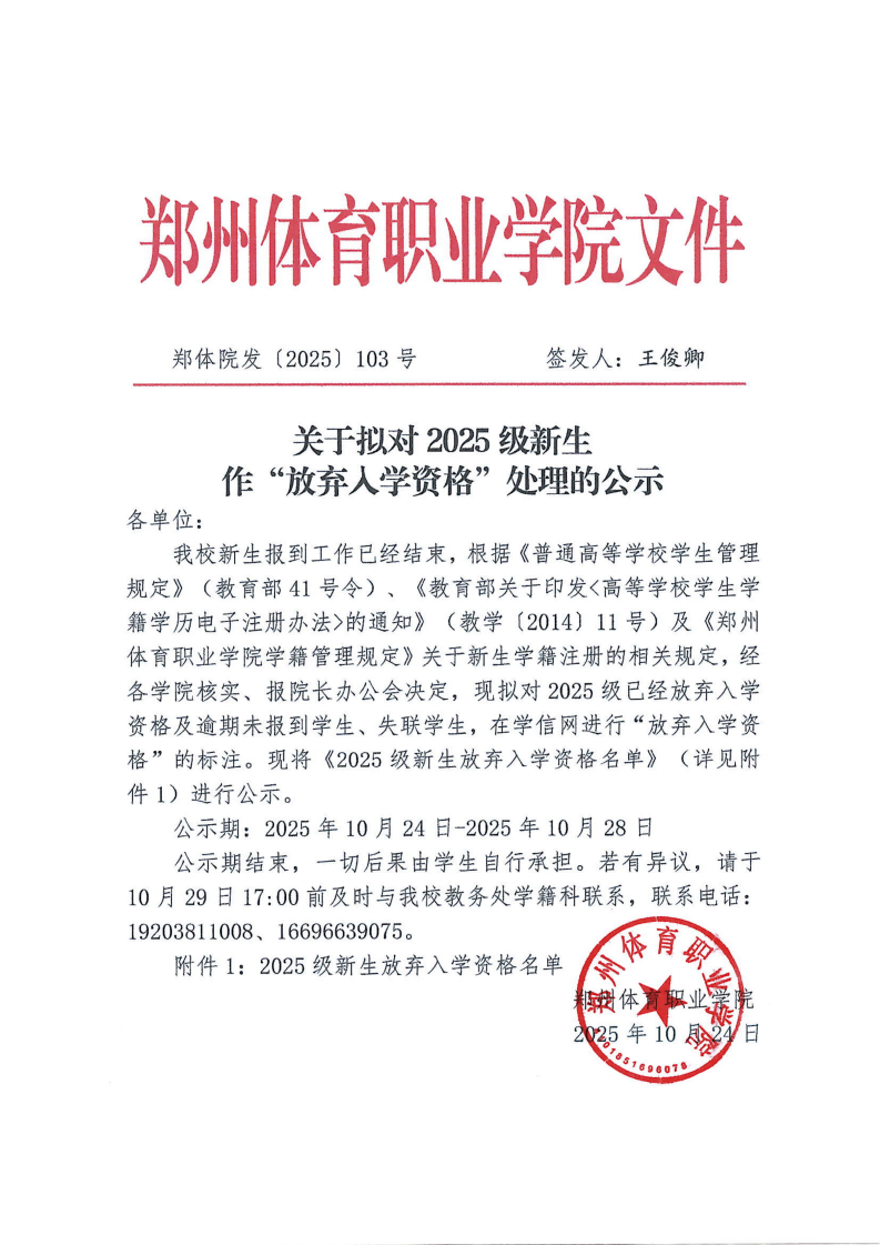 郑体院发〔2025〕103号 关于关于拟对2025级新生作“放弃入学资格”处理的公示