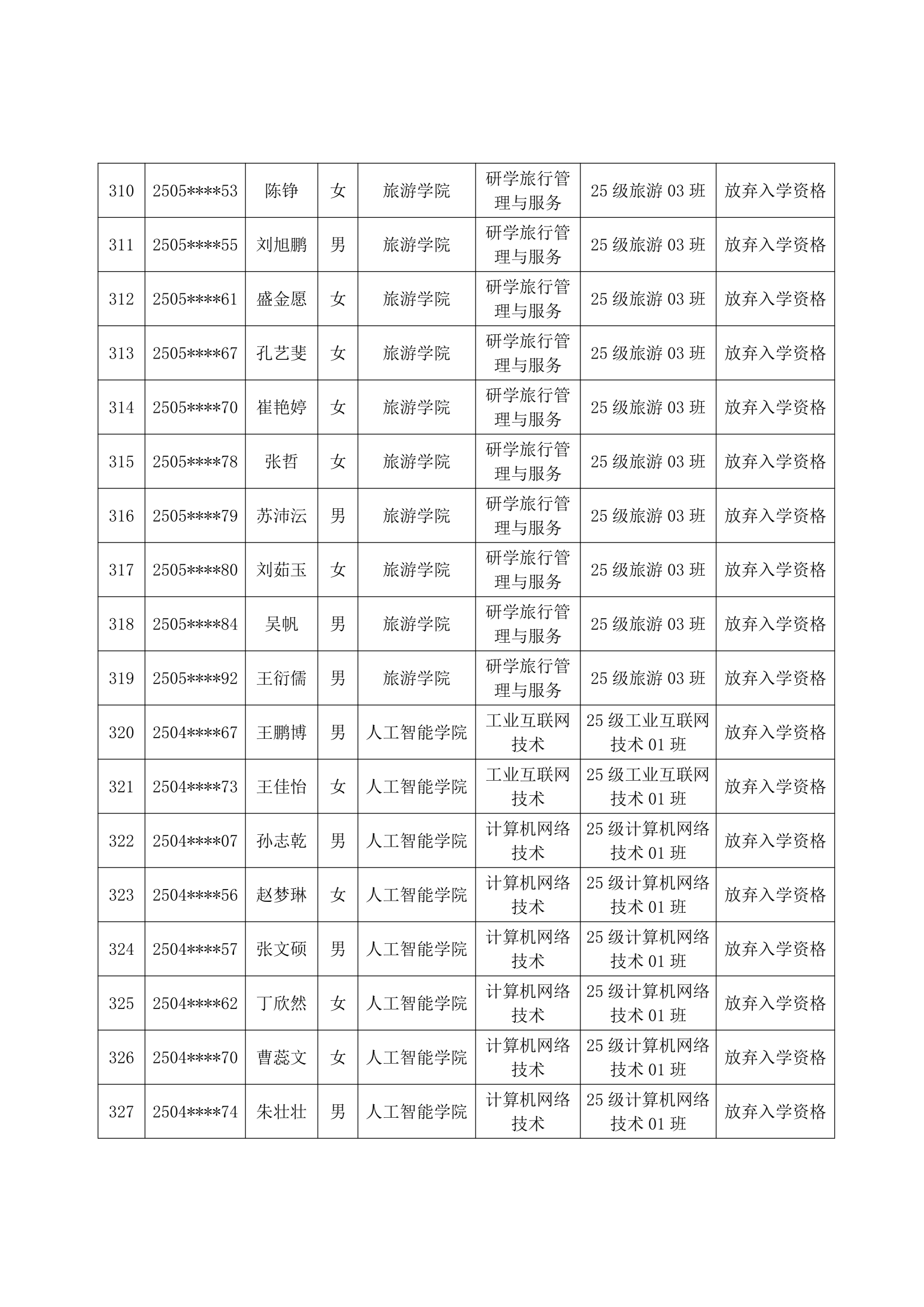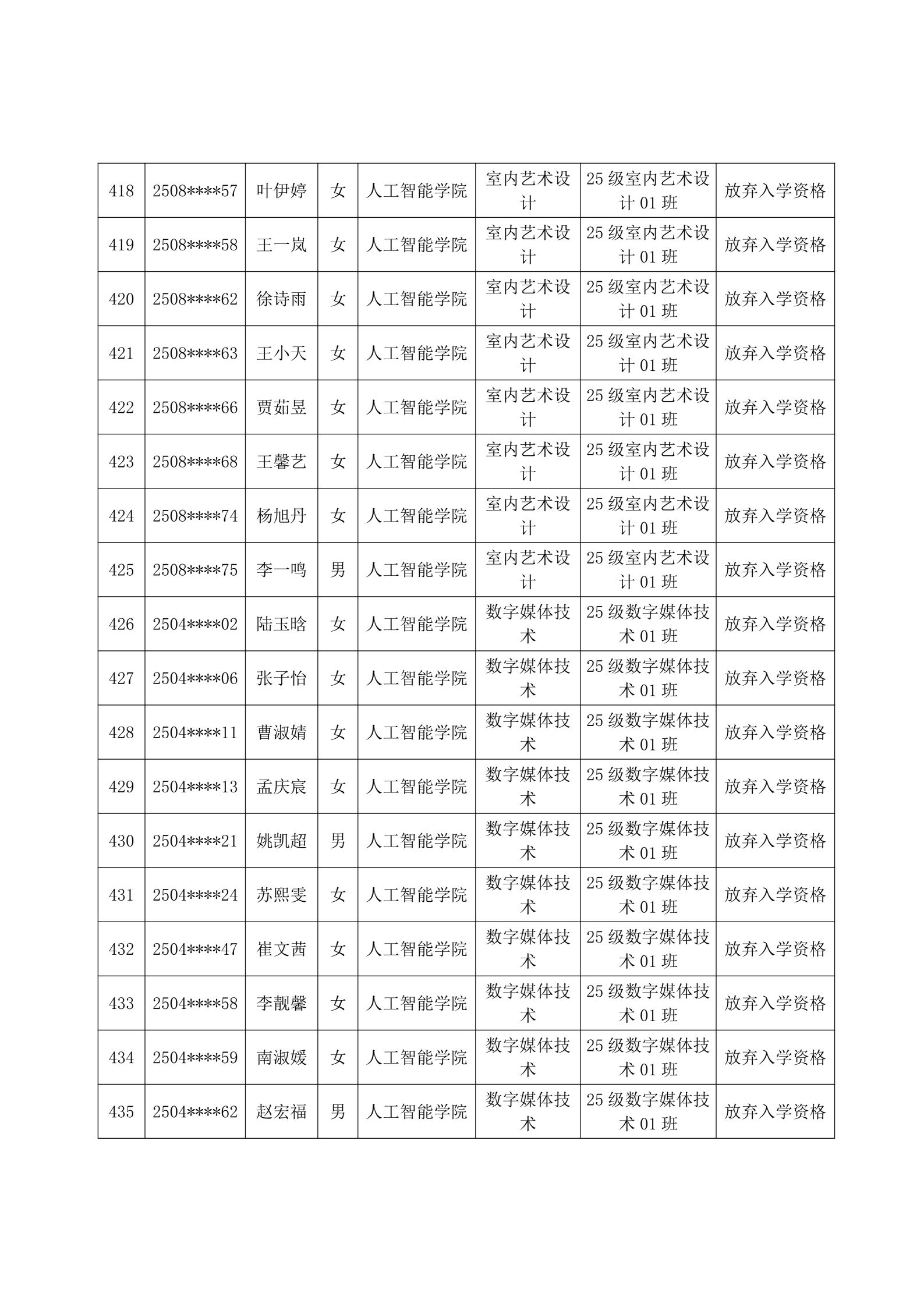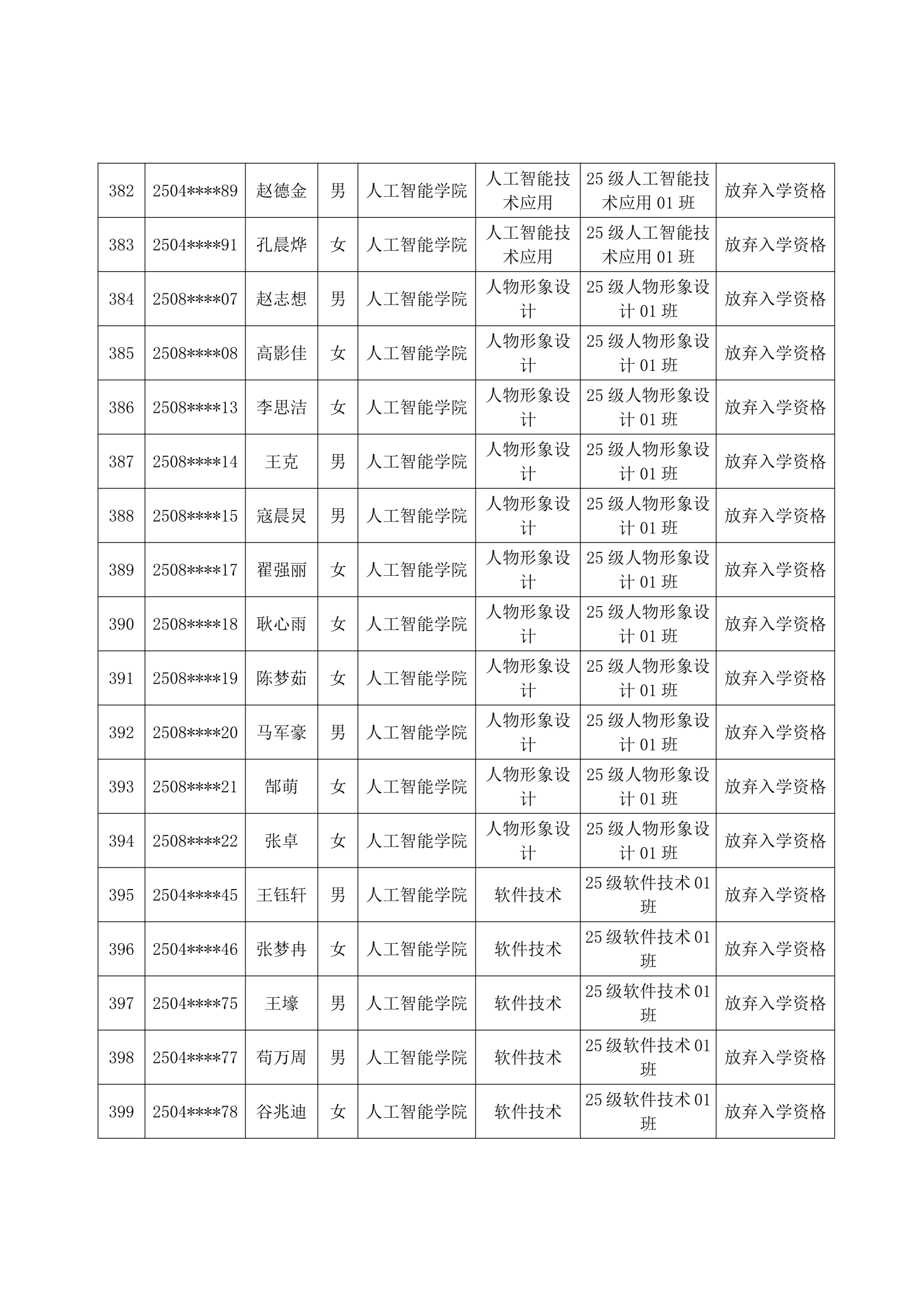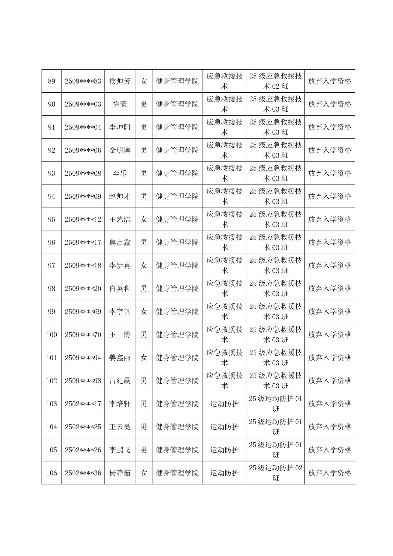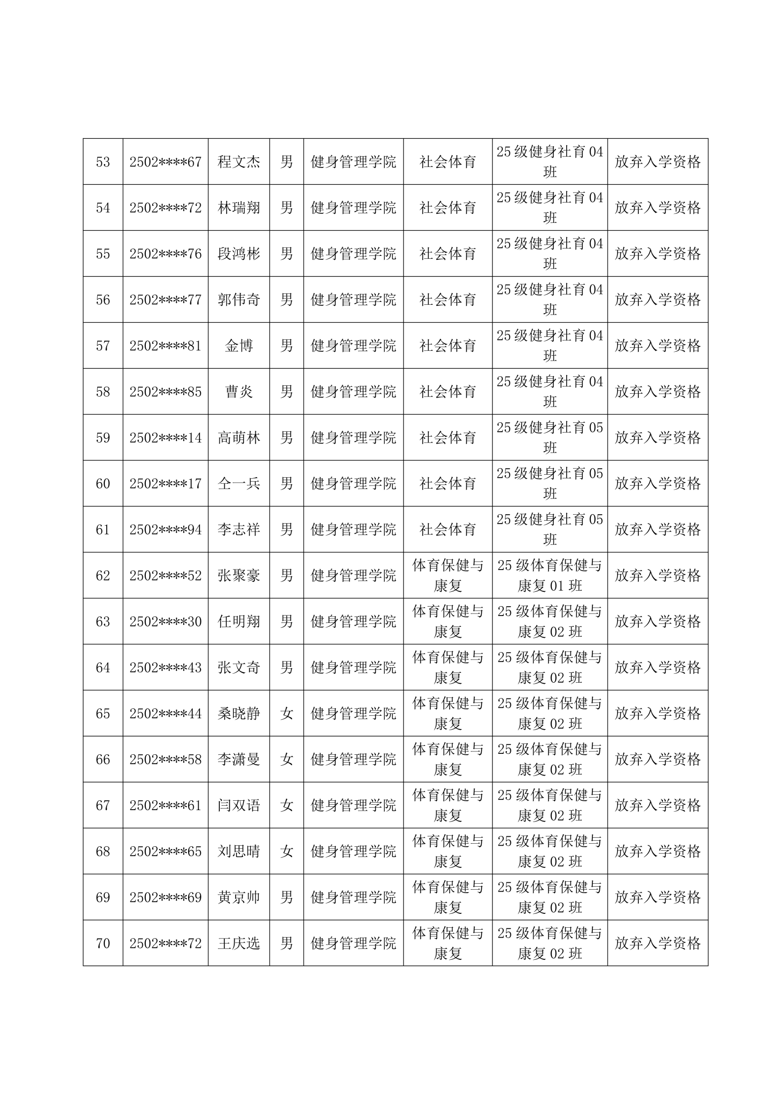 郑体院发〔2025〕103号 关于关于拟对2025级新生作“放弃入学资格”处理的公示