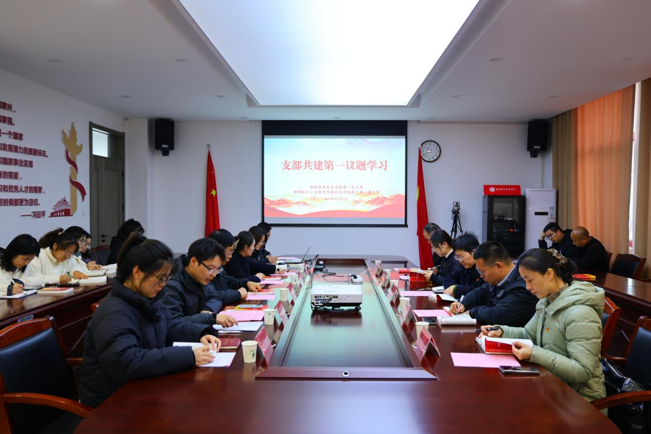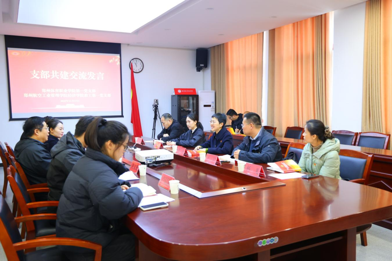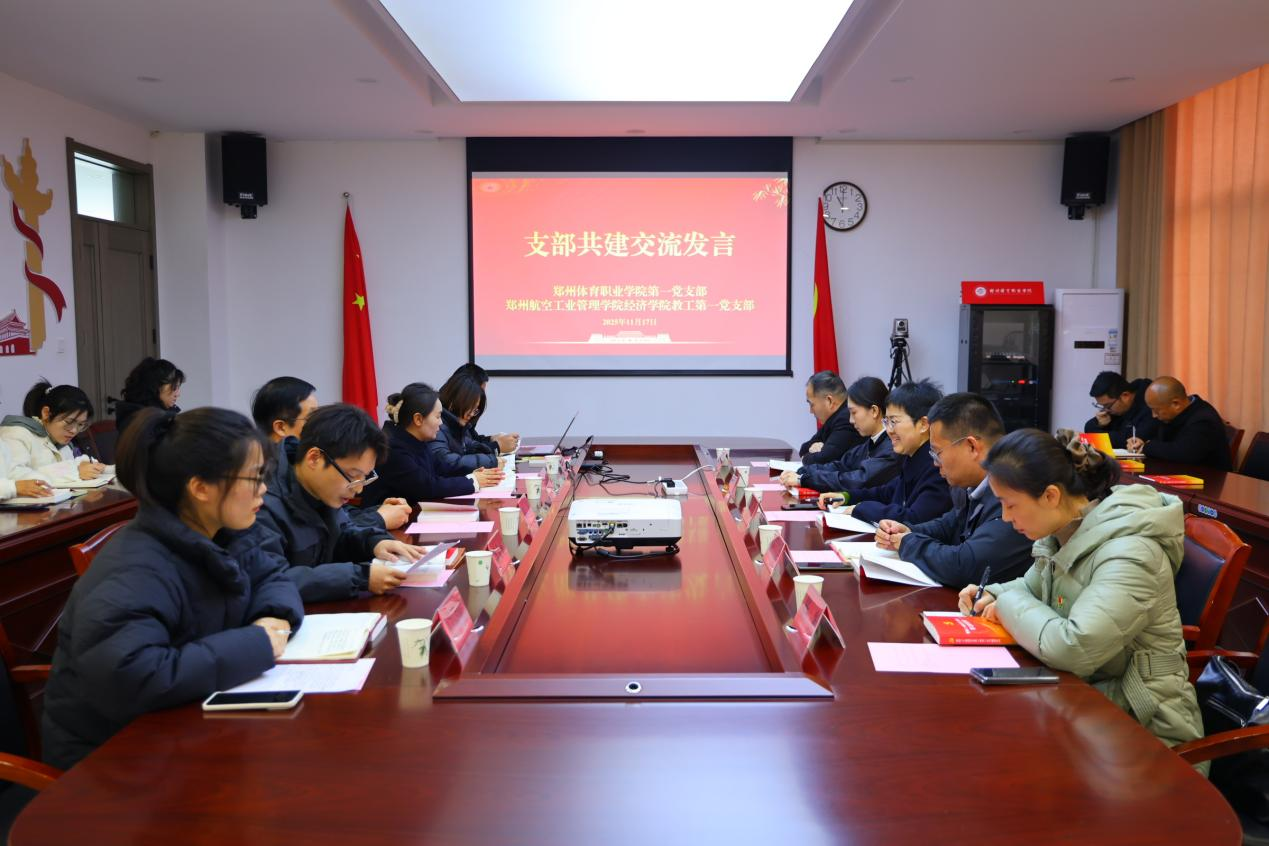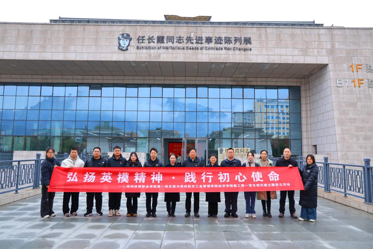 2025年11月17日上午,郑州体育职业学院第一党支部与郑州航空工业管理学院经济学院教工第一党支部以“弘扬英模精神、践行初心使命”为主题,联合开展支部共建系列活动。郑州航空工业管理学院经济学院党委书记贺琼、教工第一党支部书记王岩,郑州体育职业学院党委书记赵昕,党委副书记、纪委书记王晓慧,第一党支部书记黄文龙及双方党员同志共同参与,通过实地研学与座谈交流相结合的方式,推动党建与业务深度融合。