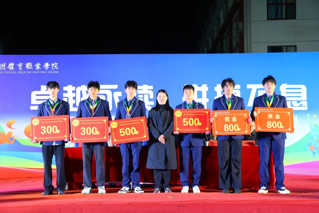 体育教育学院副主任徐玉敏为获奖代表颁发荣誉证书和奖金