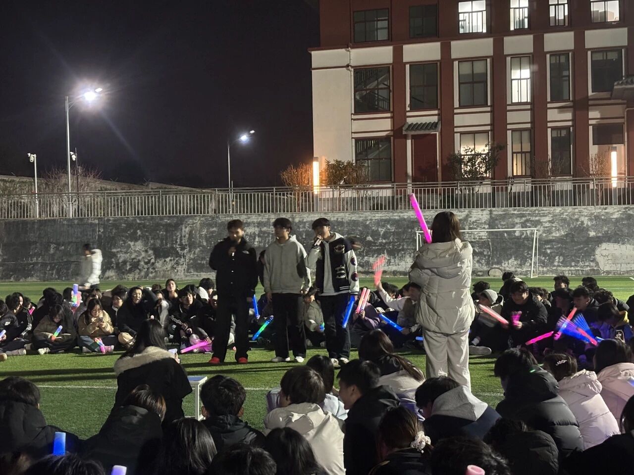 活动分时段呈现,兼顾互动解压与情感共鸣的破冰环节中,全员围坐开展“词语接龙”游戏,两字、四字词语交替传递,快速消除了陌生感,现场笑声不断。“星动协作”环节,17个才艺节目轮番上演,唱歌、跳舞等精彩表演赢得阵阵掌声,展现了师生们的青春风采。而最后的“星夜联欢”将活动推向高潮,全场师生齐唱《夜空中最亮的星》《平凡之路》等经典歌曲,手机闪光灯同步亮起,打造出壮观的“人工银河”,温暖氛围感染着每一个人。