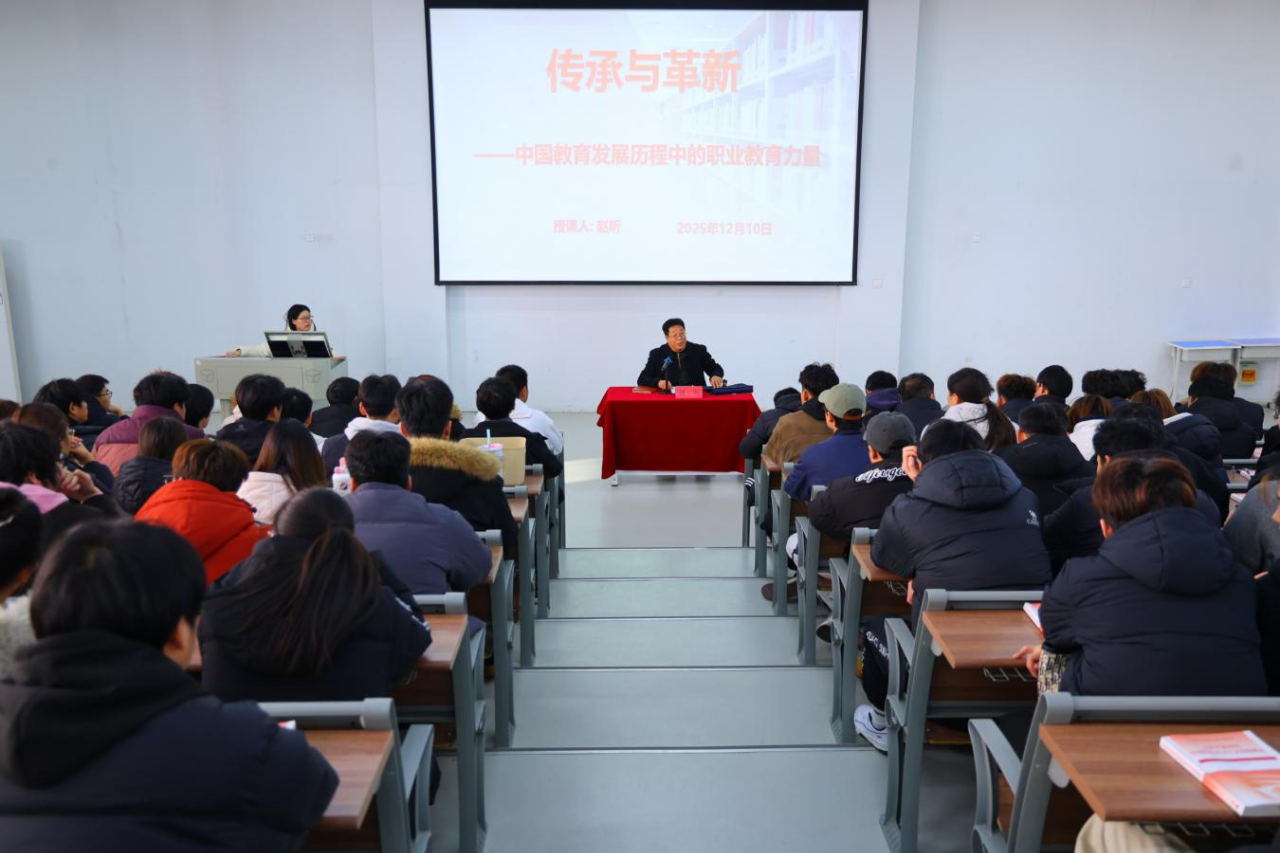 为引导广大学生深刻认识我国教育发展的历史脉络与时代价值,感悟职业教育在国家发展中的重要作用,近日,校党委书记赵昕以“传承与革新——中国教育发展历程中的职业教育力量”为题,为学子讲授了一堂立意深远、内容翔实的专题思政课。师生们齐聚一堂,共同回溯我国教育波澜壮阔的发展历程,汲取奋进力量。