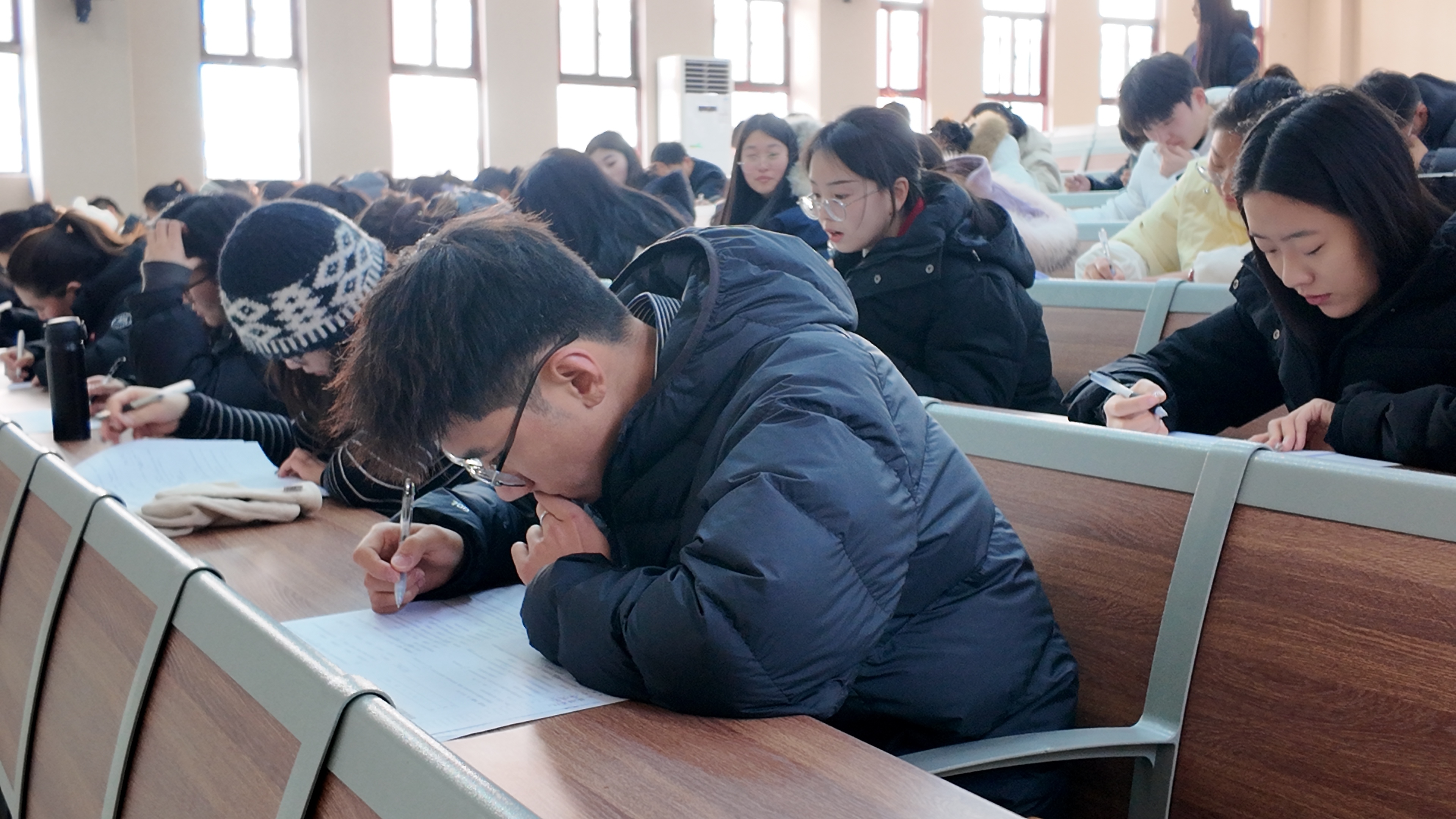 1月6日,46名辅导员参加笔试环节。该环节以闭卷形式开展,重点考察辅导员的理论素养与业务知识。全校辅导员同场应考,沉着应考,将扎实的理论储备清晰落于卷面之上。