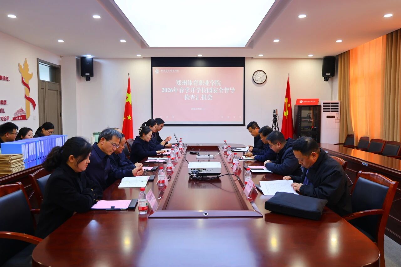 3月5日,省教育厅第十督导组一行莅临我校,通过实地核查、台账查阅、座谈交流等方式,开展春季开学校园安全专项督导检查。郑州体育职业学院校长贾少鑫,党委副书记、纪委书记王晓慧,副校长王俊卿,校长助理孙丽出席会议,学生处、教务处、安全处、后勤管理处、餐饮处等相关部门负责人全程陪同检查。王晓慧主持会议,贾少鑫代表学校作工作汇报。
