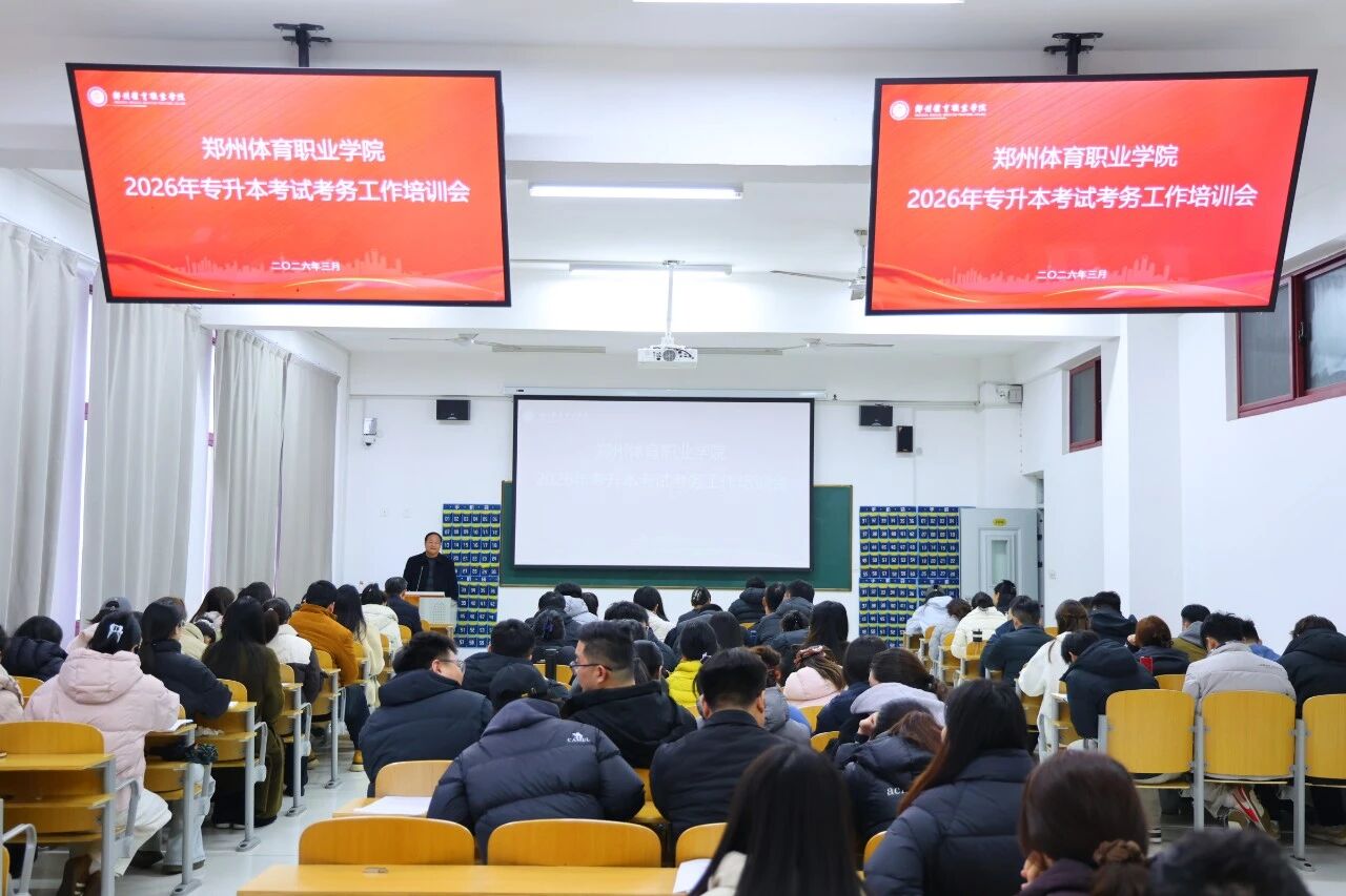 为切实做好2026年专升本考试各项组织筹备工作,筑牢考试安全防线,规范考务工作流程,确保考试工作公平、公正、安全、有序开展,近期,郑州体育职业学院先后召开 2026 年专升本考试工作部署会议与考务工作培训会,层层压实责任、细化工作举措、提升业务能力,为专升本考试顺利实施打下坚实基础。校党委副书记、纪委书记王晓慧,副校长王俊卿,副校长赵聂,学生处处长秦明山、教务处副处长黄文龙和各二级学院院长,各学院主任、各教研室负责人、专升本考务工作人员及涉考辅导员参加会议。