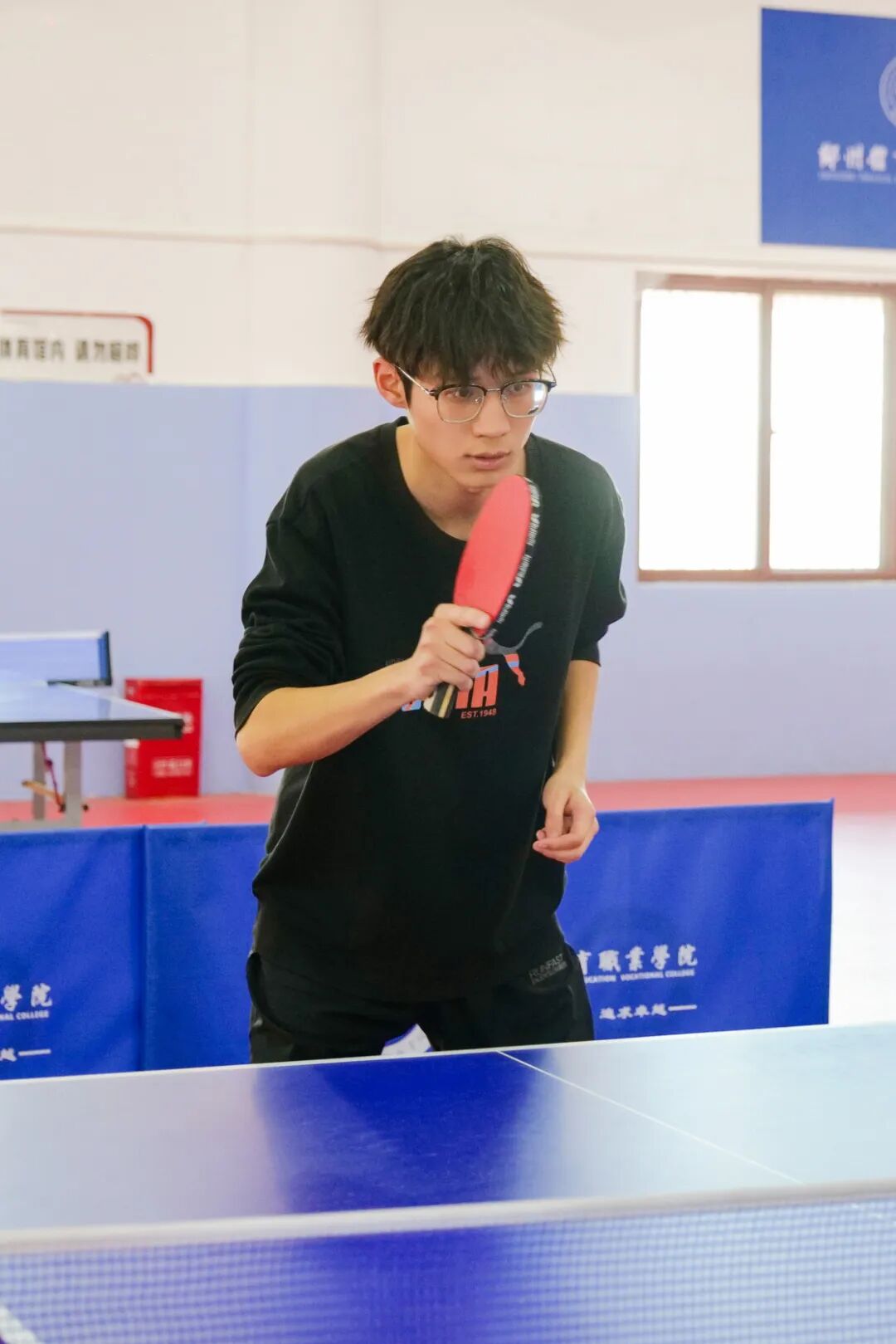 男生们专注地发球、推挡、弧圈球