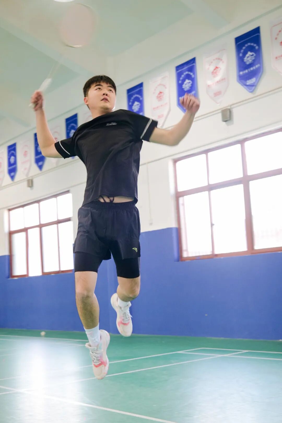 在羽毛球馆轻盈灵动