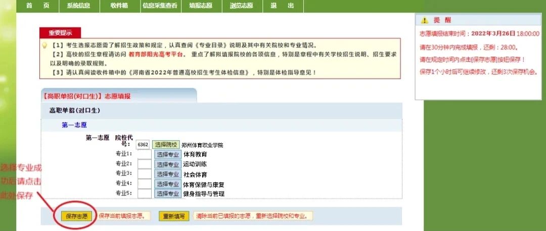 注意:志愿保存成功,志愿才有效。