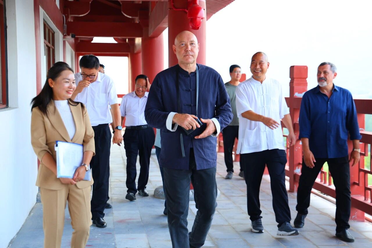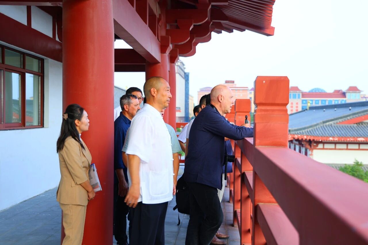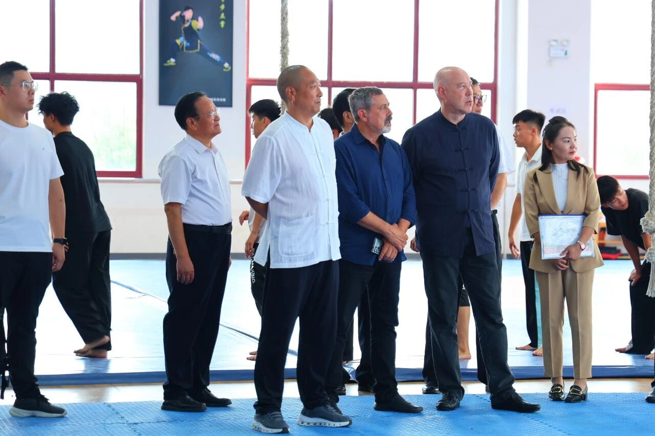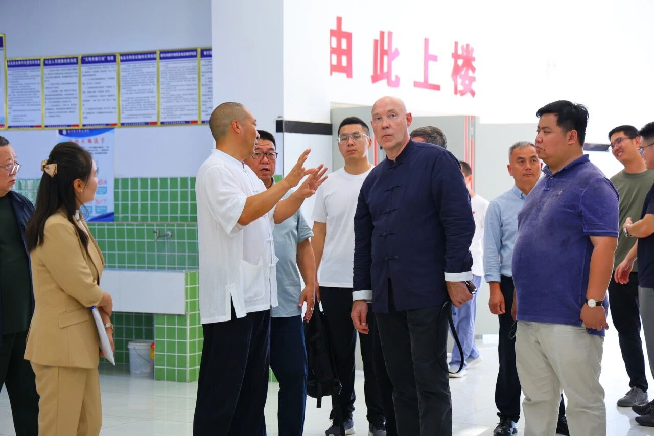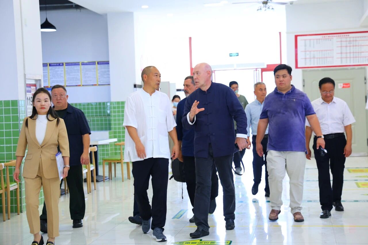 俄罗斯武术联合会主席穆兹鲁科夫一行在相关负责人陪同下实地参观了北校区体育馆、健身房、餐厅以及南校区行政楼、校史馆。