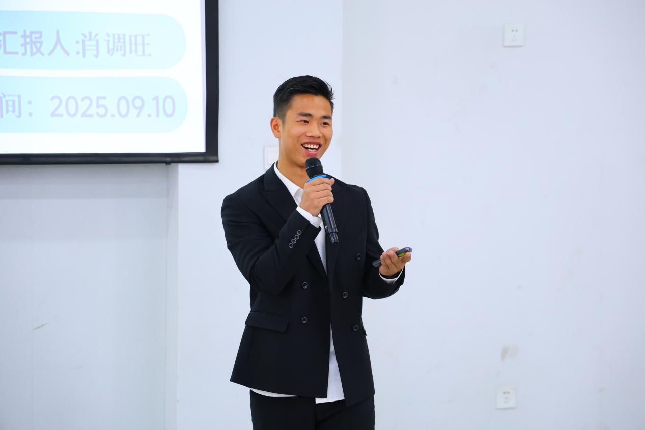 同样在汇武的肖调旺,其分享《大学开局!硬核成长攻略》极具实用价值,瞬间点燃了全场大一新生的热情。他以学长的身份,倾囊相授了自己在时间管理、技能学习、竞赛参与和实习准备方面的“干货攻略”,并提出了“大一定方向,大二练内功,大三见真章”的清晰成长路径,为尚处迷茫的新生们提供了一份宝贵的“行动地图”。