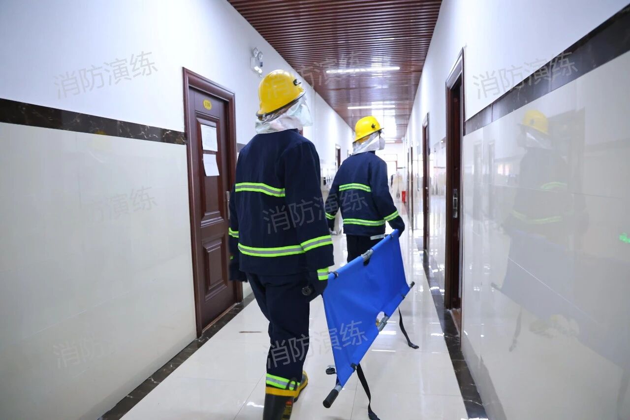 同时,学校微型消防站队员迅速携带消防器材赶赴“火场”,展开模拟灭火和搜救行动。整个演练环节紧凑、衔接顺畅,从警报响起至全体人员安全撤离完毕,仅用时1分钟,充分展现了师生良好的应急反应能力和协同配合水平。