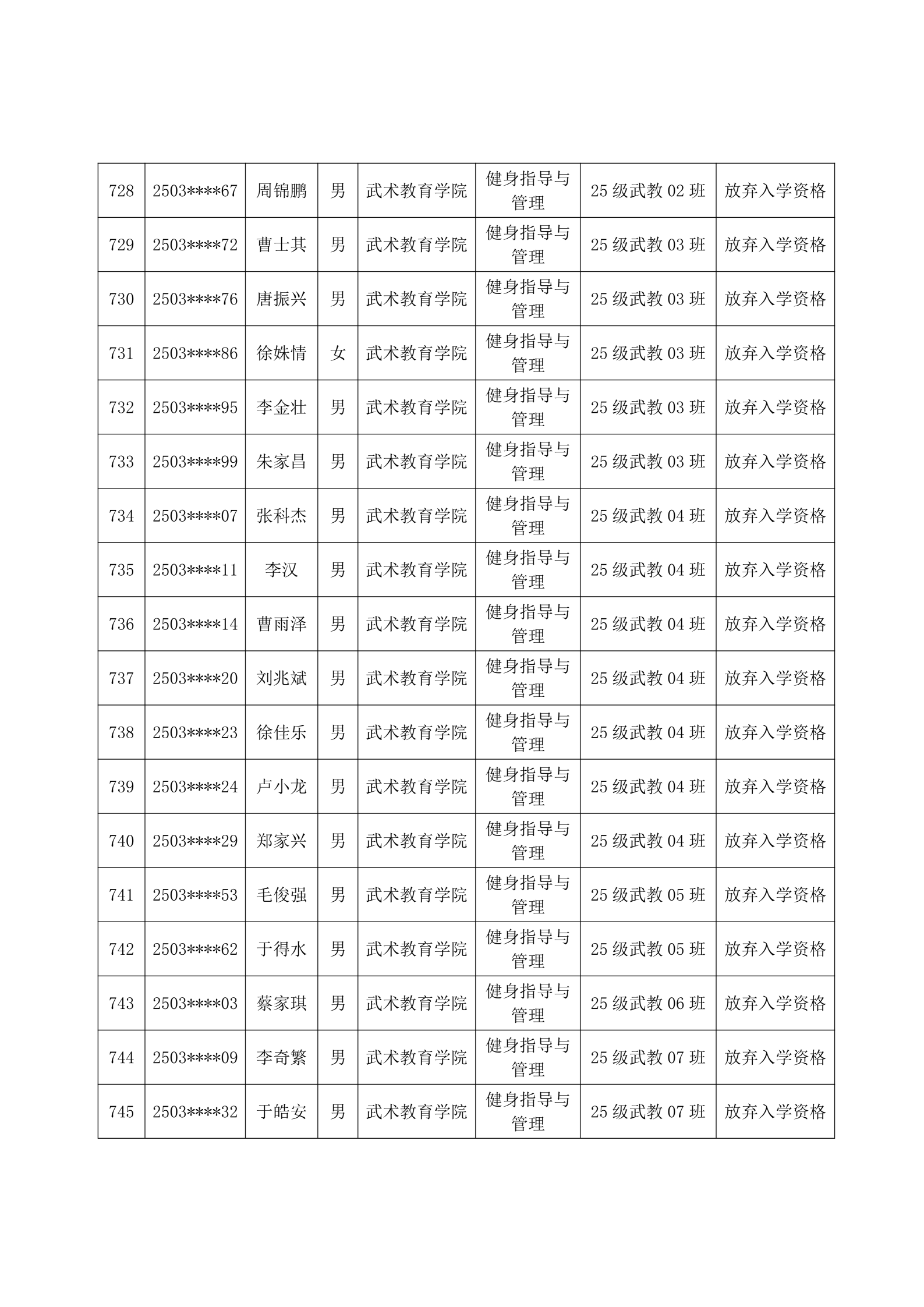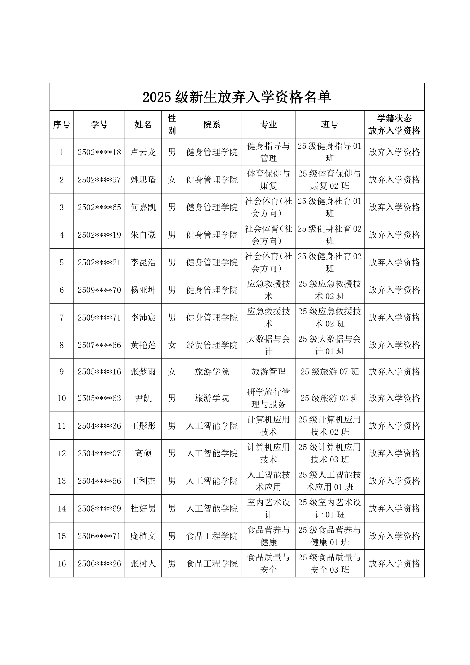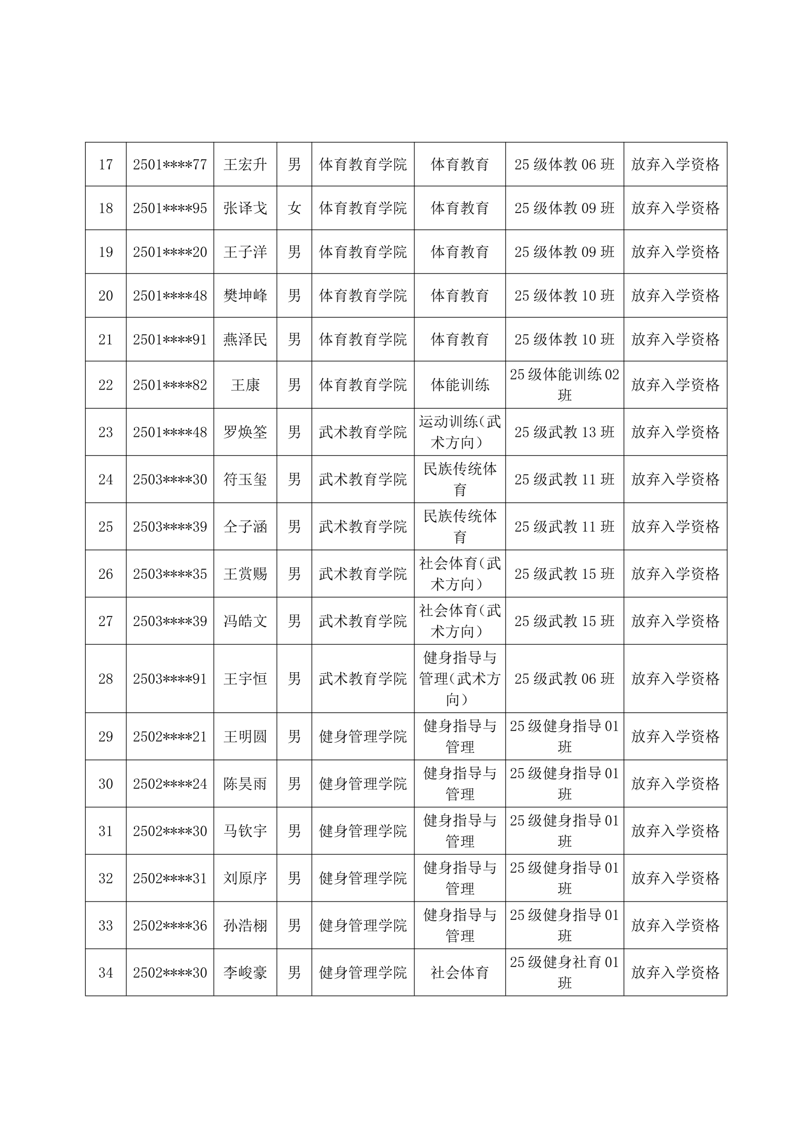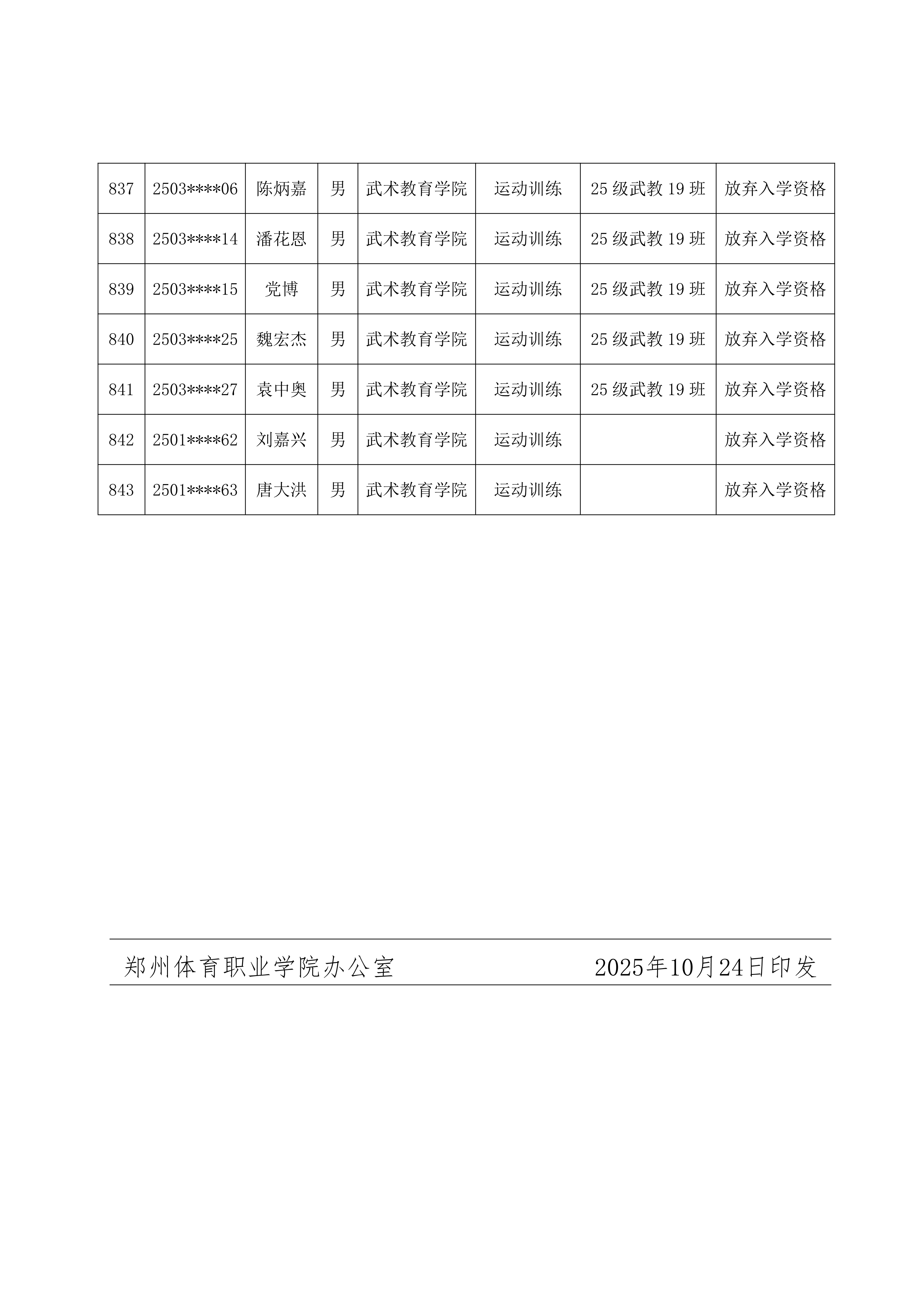郑体院发〔2025〕103号 关于关于拟对2025级新生作“放弃入学资格”处理的公示