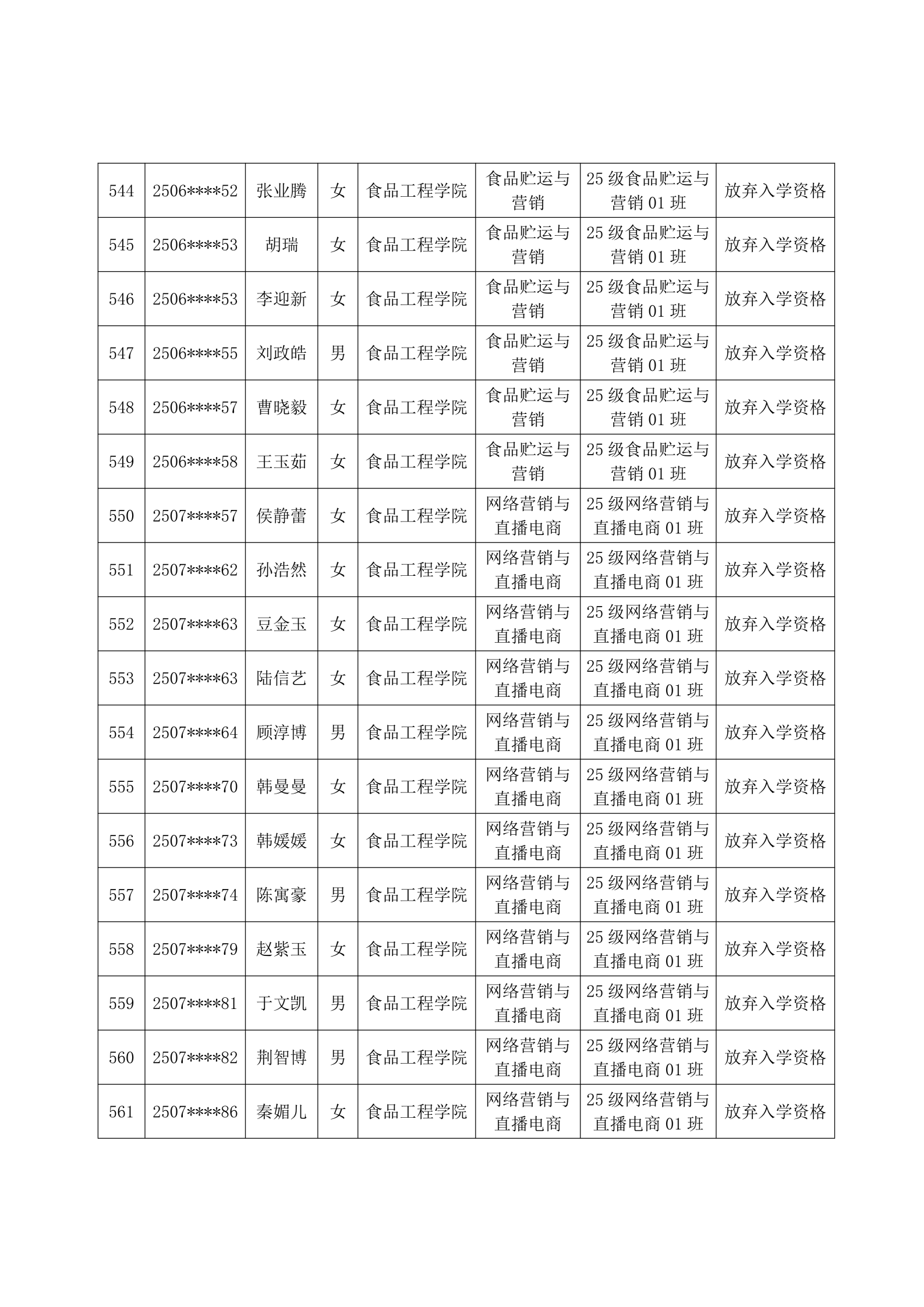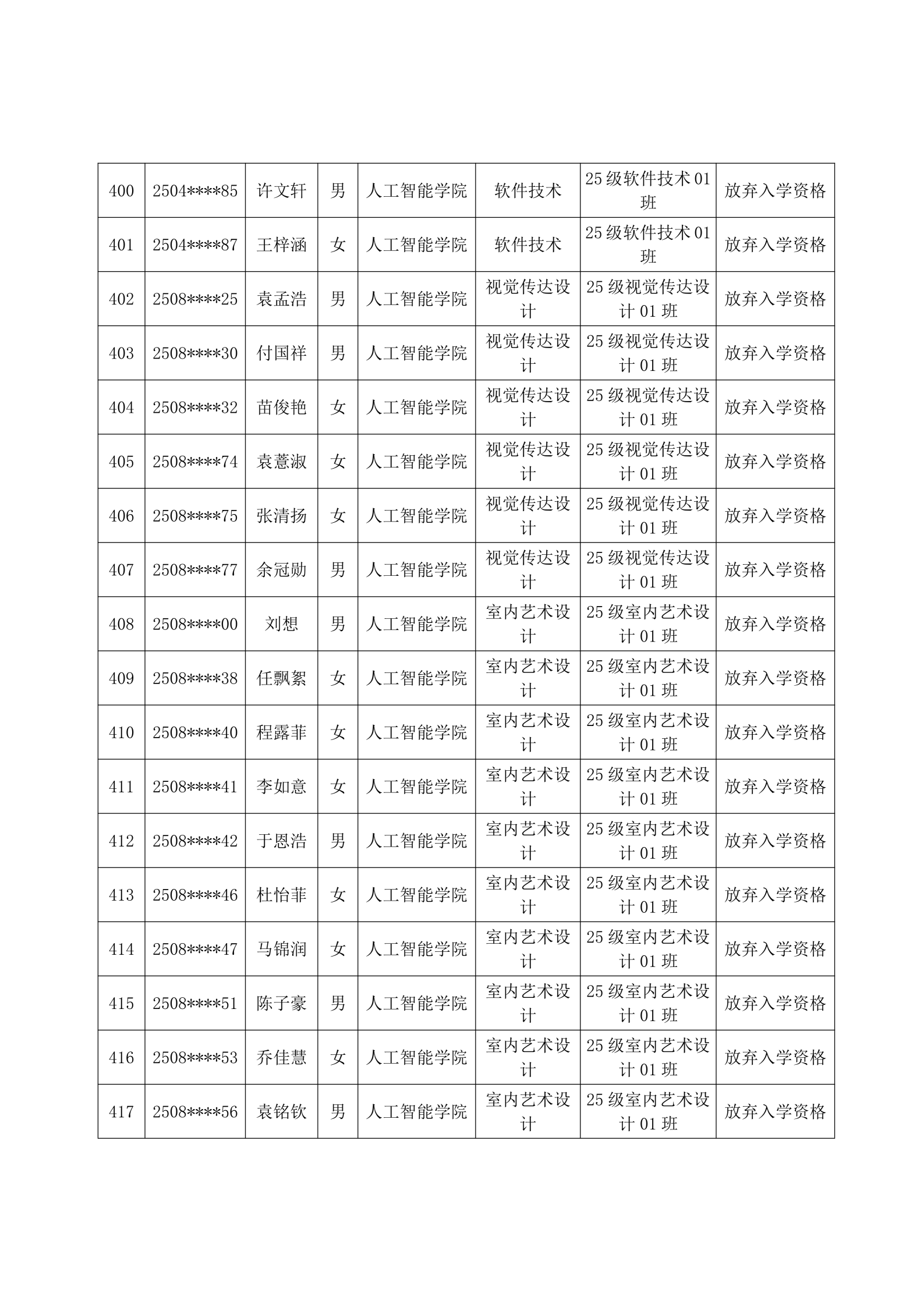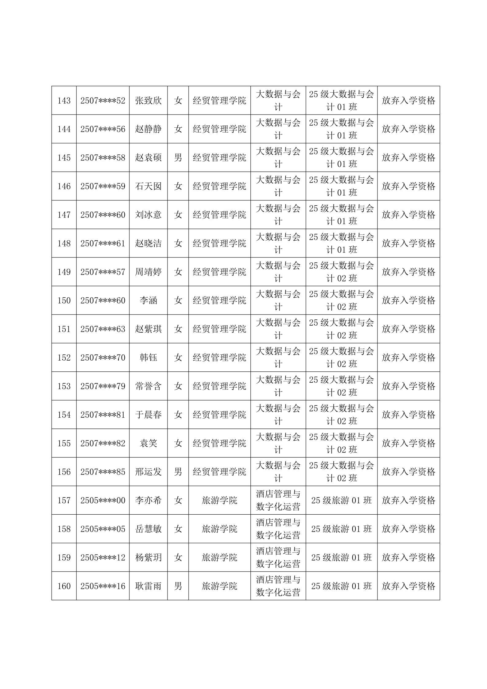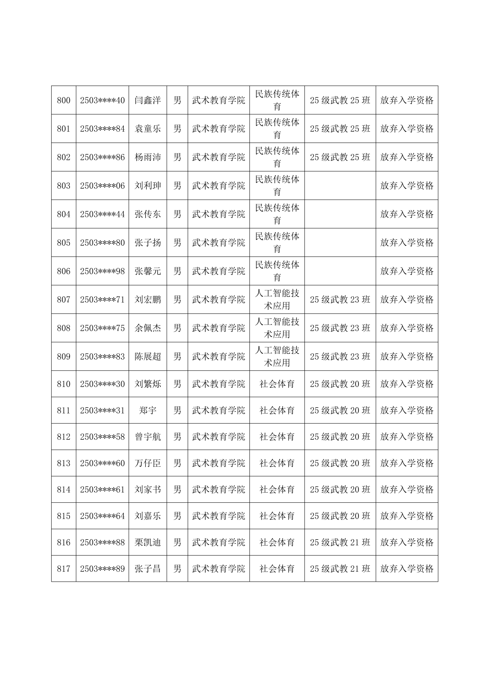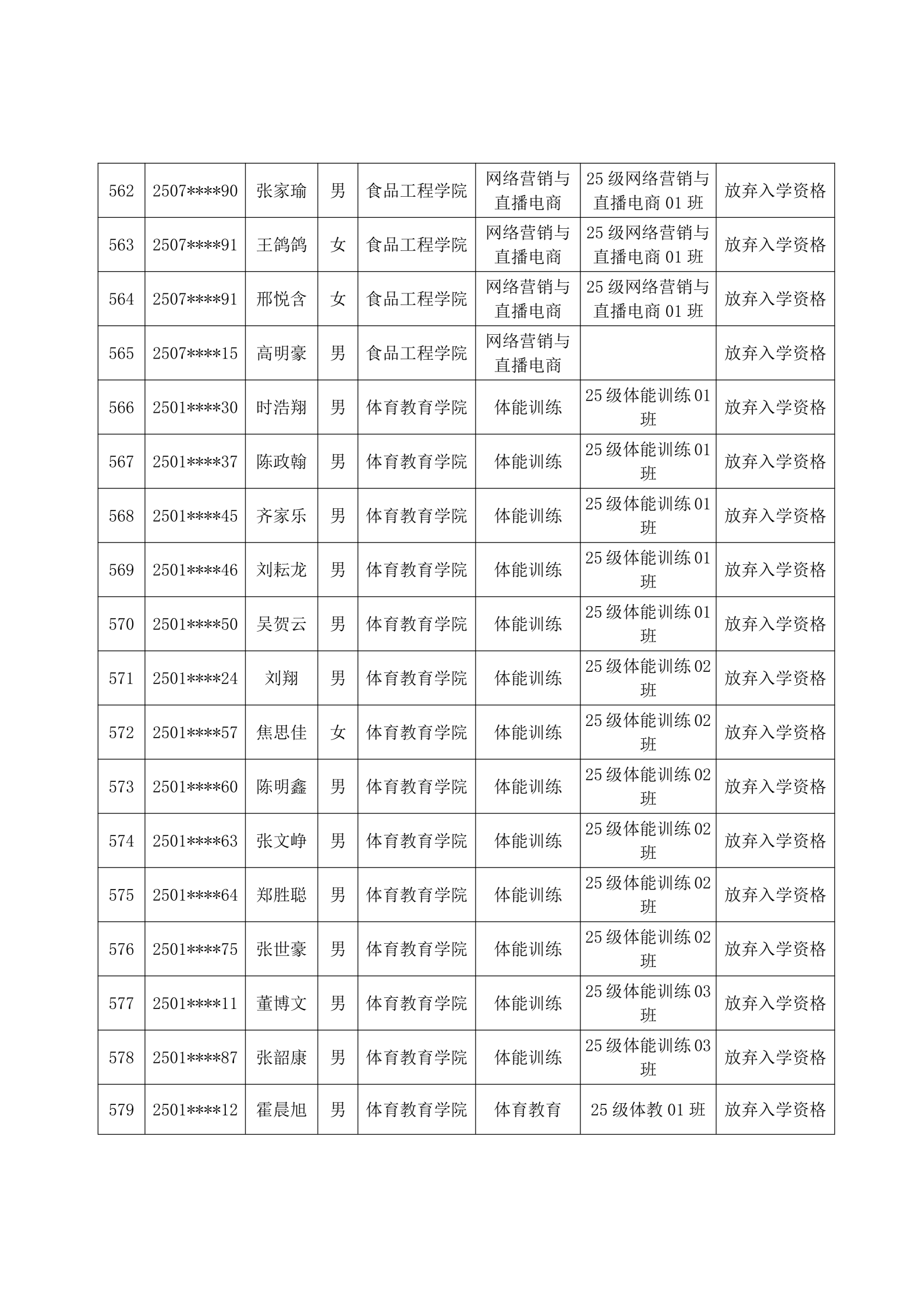郑体院发〔2025〕103号 关于关于拟对2025级新生作“放弃入学资格”处理的公示