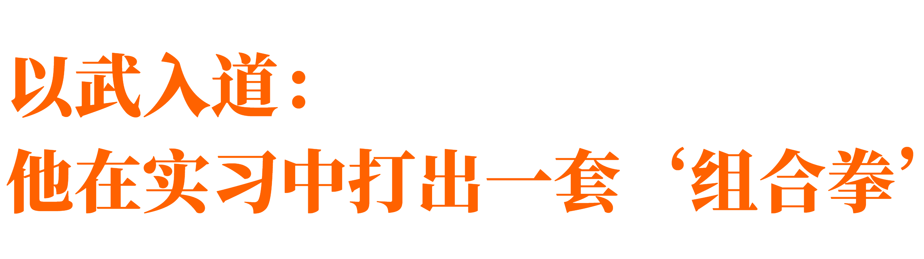 初入企业实习时,他曾对陌生的工作手足无措,在地推宣传、电销服务时不知如何开口。每每这时,是校园里武术训练锤炼出的韧劲,让他沉下心来,从观察前辈沟通、记录每一次任务细节开始,把"扎马步"的专注力用到拆解问题上。