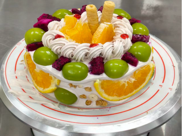 这款蛋糕精心搭配多种富含维生素的水果,色彩缤纷如盛夏果园。每一口都能尝到水果的鲜爽与奶油的醇厚,是一款集颜值与美味于一身,能给味蕾带来多重惊喜的创意鲜果奶油蛋糕。