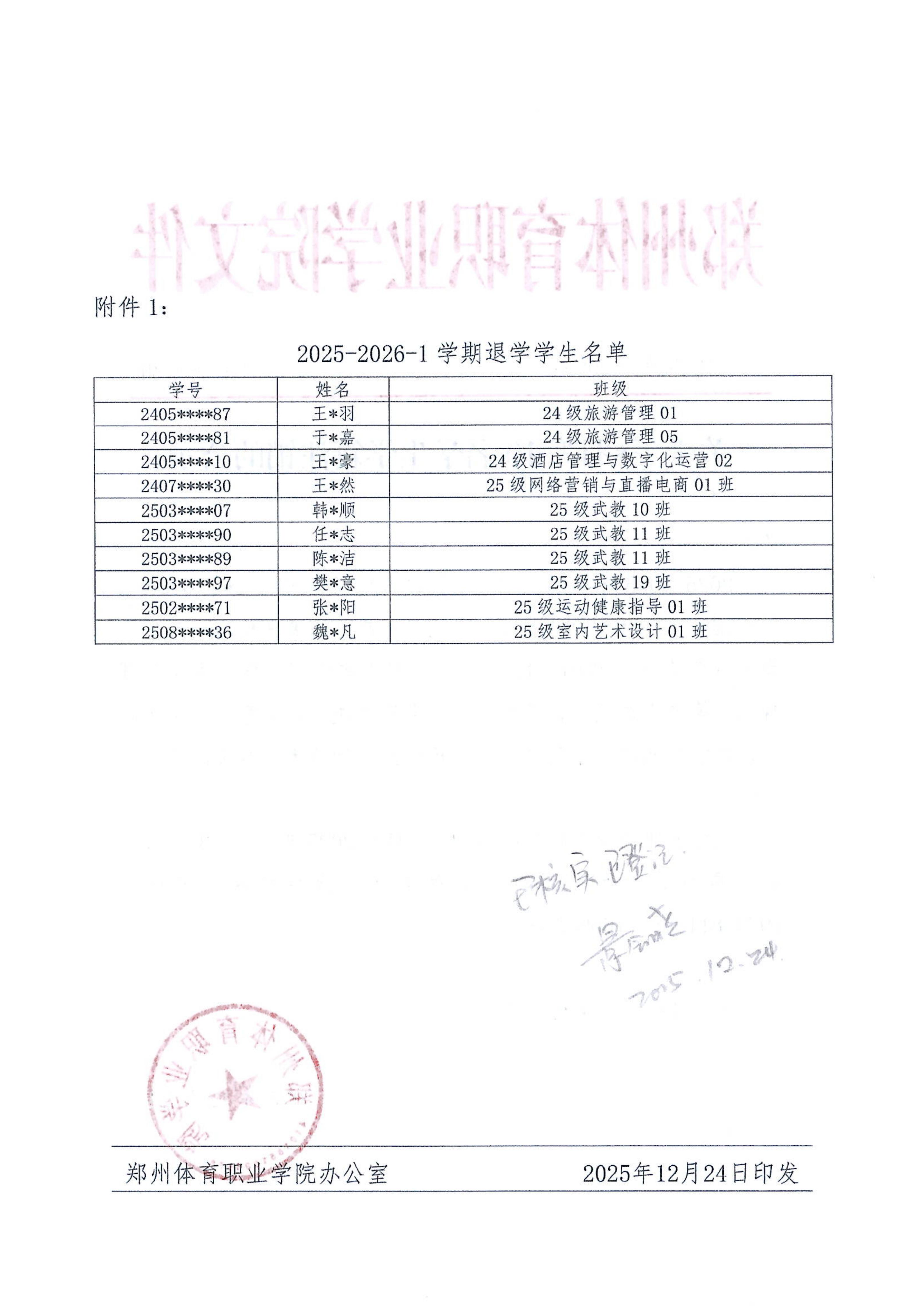 郑体院发〔2025〕125号关于王晗羽等10名学生学籍注销的公示