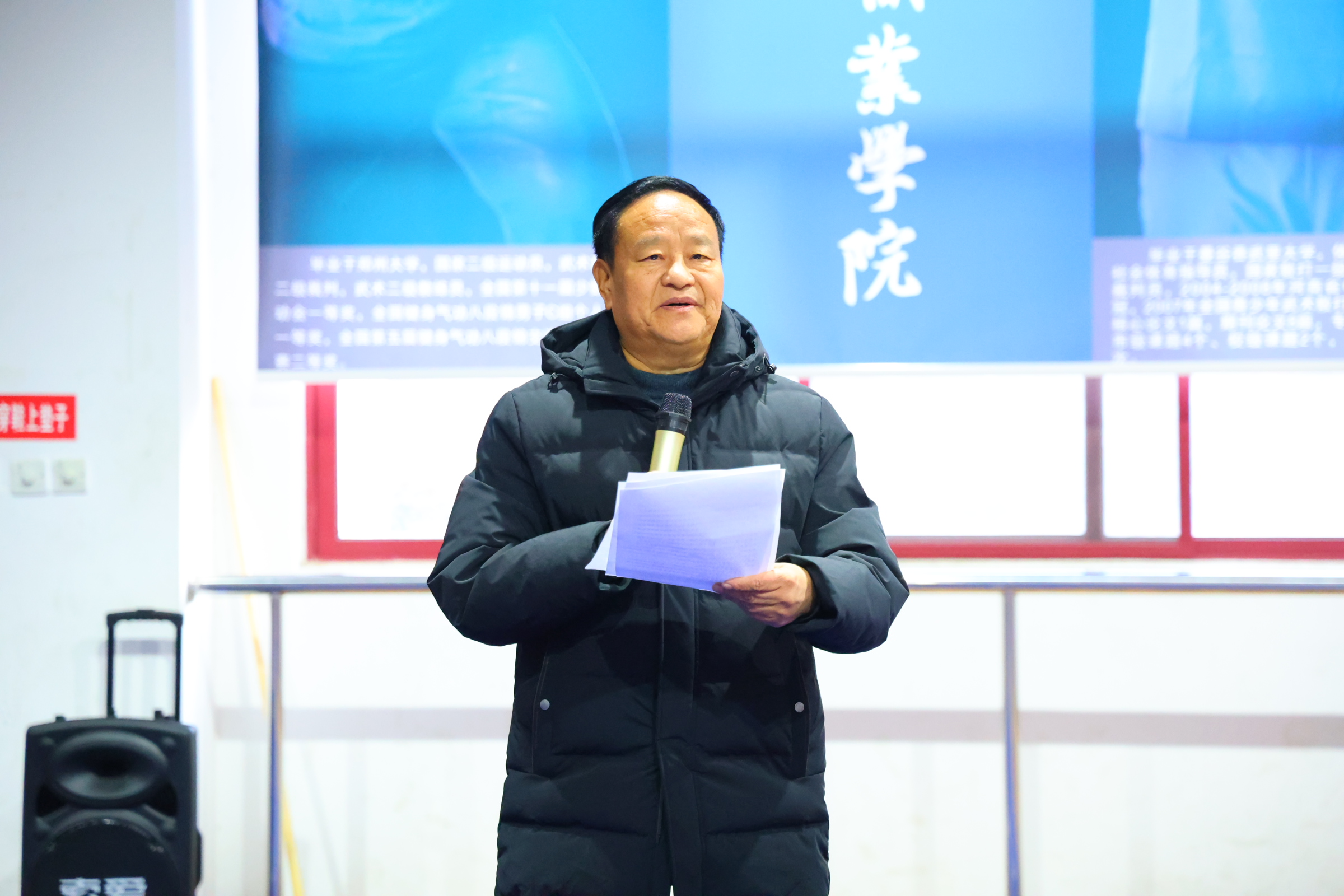 副校长王俊卿作总结讲话,他强调:“青年教师是学校体育教育事业发展的中坚力量,扎实的教学基本功与专业的体育技能,是做好体育教学、培育体育人才的根本保障。” 他鼓励体育技能组青年教师以此次比赛为契机,深耕体育教学实践,在技能示范的规范性、教学方法的创新性、技能教学与思政育人的融合性上持续下功夫,把比赛中积累的经验、收获的建议转化为日常教学实效,不断锤炼教学本领、提升育人水平,让体育课堂既练就学生过硬技能,又涵养学生体育精神与职业素养。