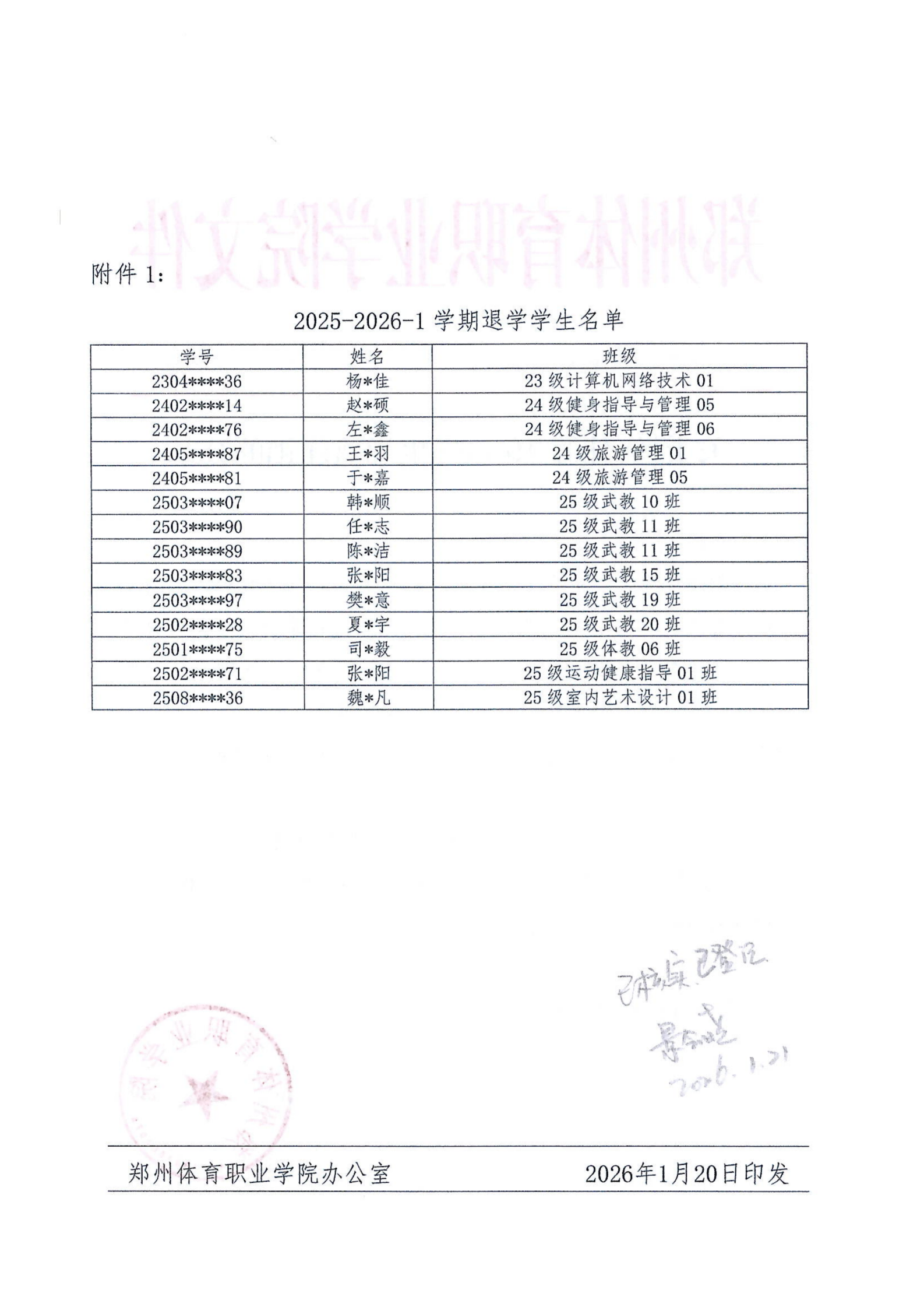 郑州体育职业学院关于杨世佳等14名学生学籍注销的公示