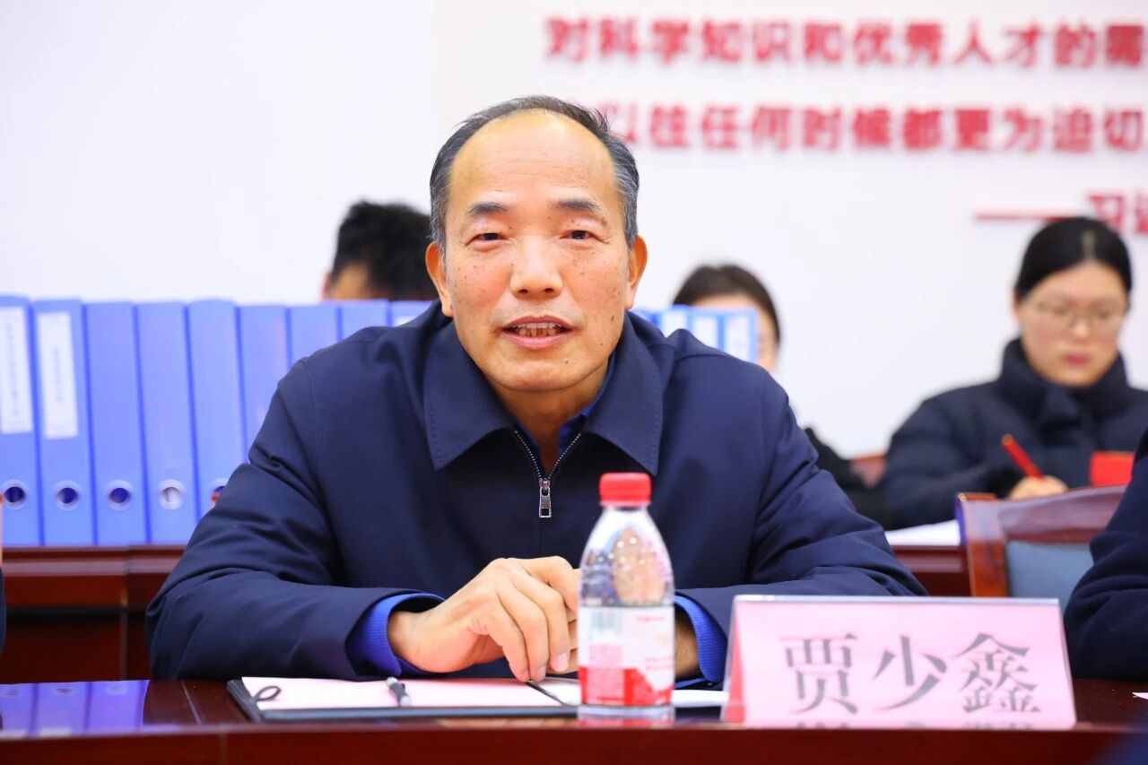 校长贾少鑫致欢迎辞并代表学校作工作汇报