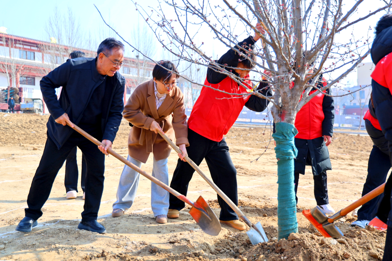 春风催新绿,植树“郑”当时。3月12日上午,学校在南校区文广场开展“植绿护绿强体魄 健康育人筑初心——以体育力量助力健康中国建设”植树节主题活动。少林延鲁教育集团、郑州体育职业学院创办人林清华,校党委副书记、纪委书记王晓慧,校长贾少鑫,携手任友祥将军、许保增大校、张静同志,与各二级学院师生代表携手植绿,以体育院校特色实践践行绿色发展理念,推动健康育人理念在郑体校园落地生根。