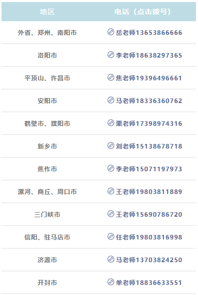 各区域招生咨询老师电话