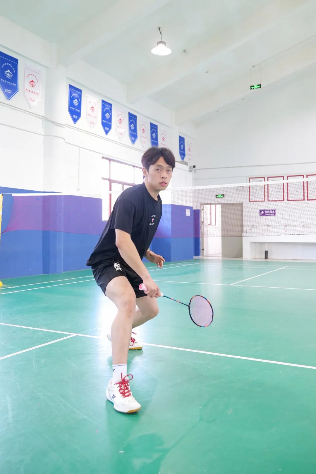在羽毛球馆轻盈灵动