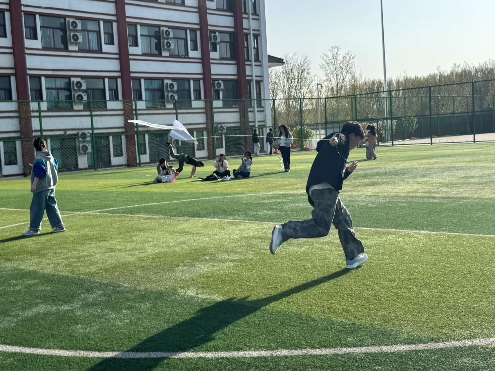 风筝未必总能顺利起飞,或许会在空中摇晃,或许会骤然坠落,而这恰恰是活动赋予的深意。面对未知的挑战,不退缩、不放弃,一次次尝试,一次次奋力奔跑。迎难而上,正是青春最动人的模样。当风筝随着手中的线越飞越高,最终触碰云端,同学们在欢声笑语中读懂:人生亦如放风筝,逆风而行,才能飞得更高更远。