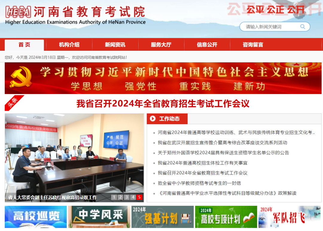 点击进入河南省教育考试院官网,点击如下图示位置,进入“河南省普通高校招生考生服务平台”(https://pzwb.haeea.cn/)系统。